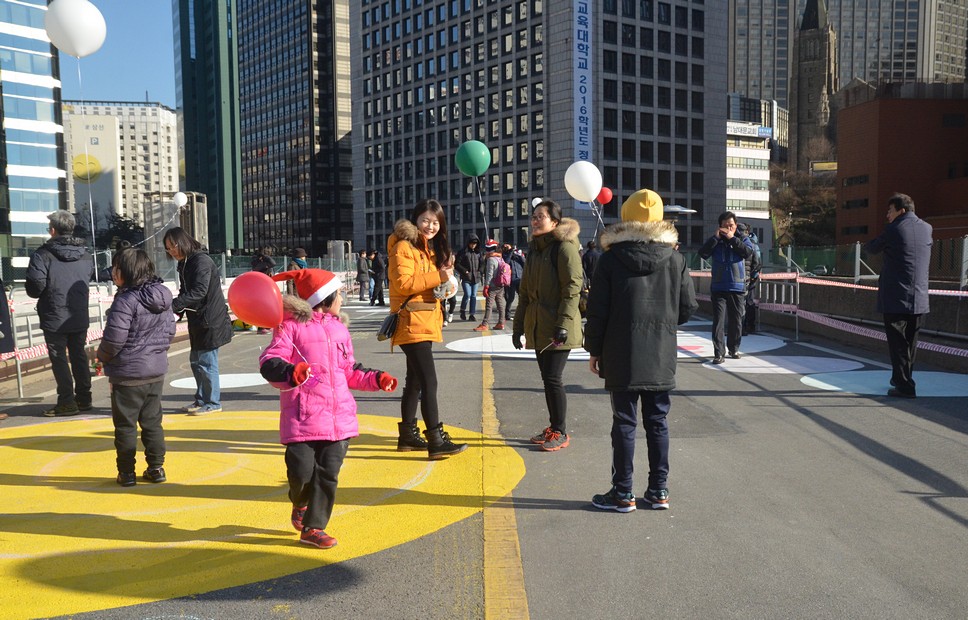I saw lots of kids playing some sort of tag-related game involving circles. Also worth noting, the people on the left with the big bag were handing out Santa hats.