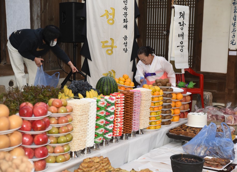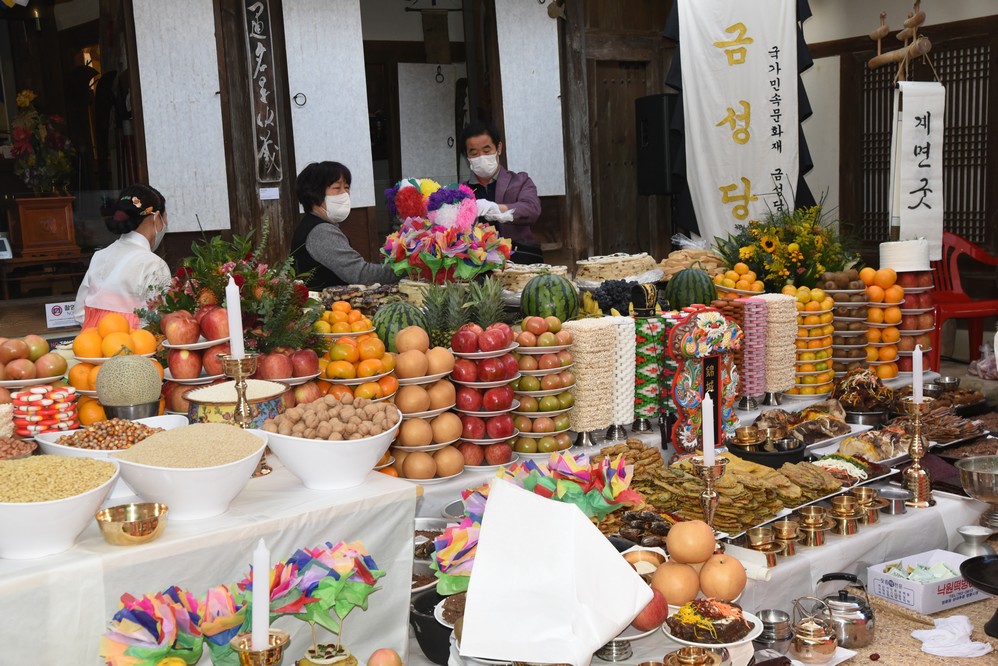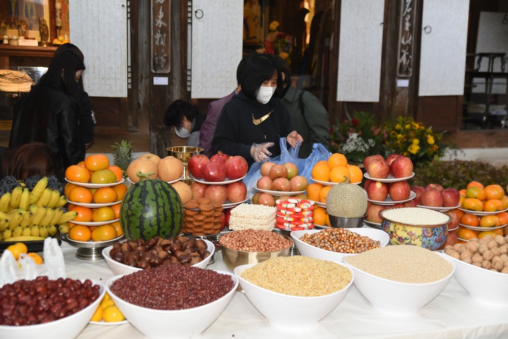 Sacrificial foods. All of this will go home with someone.