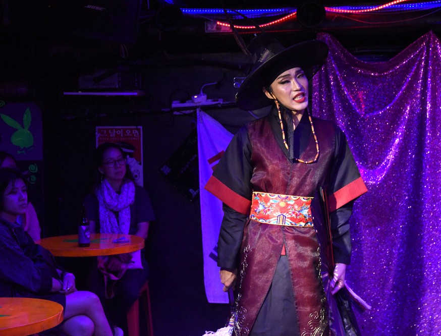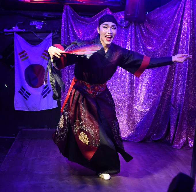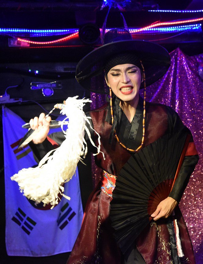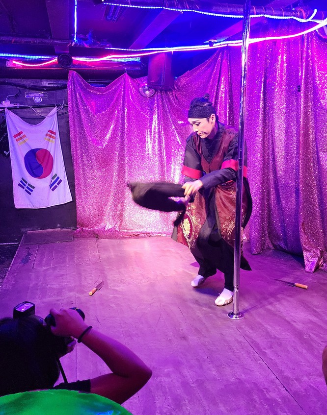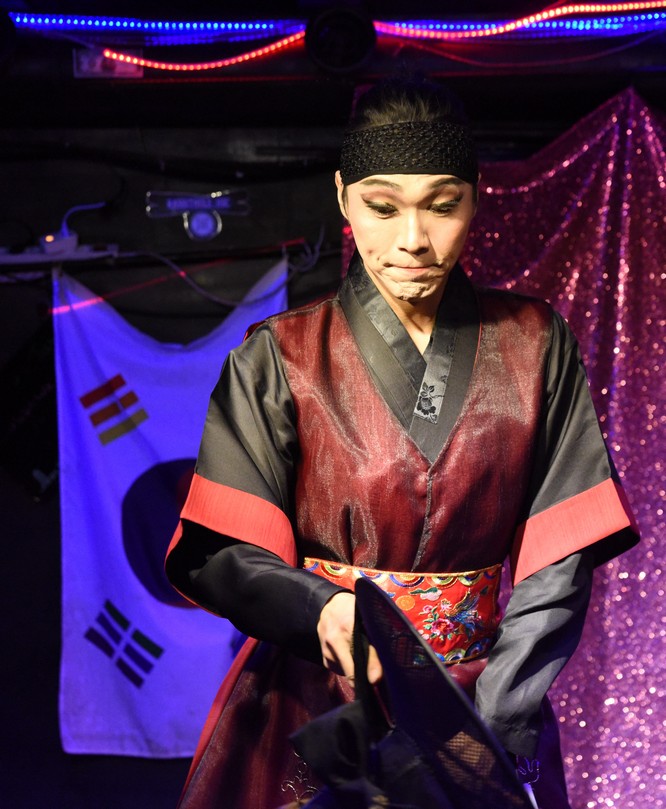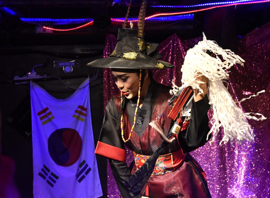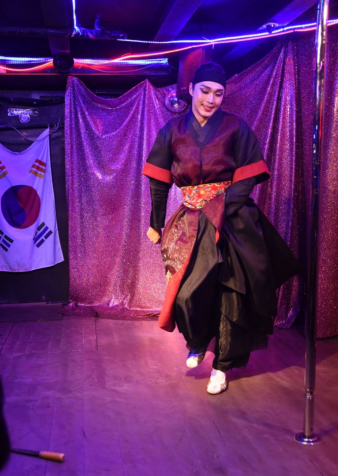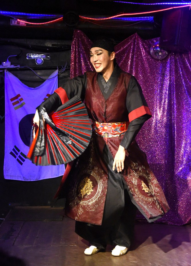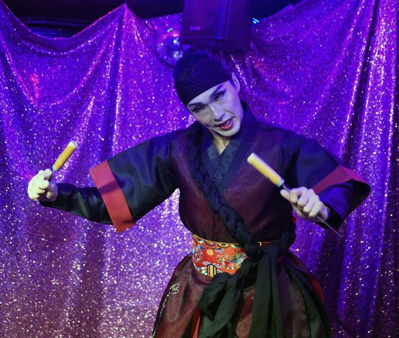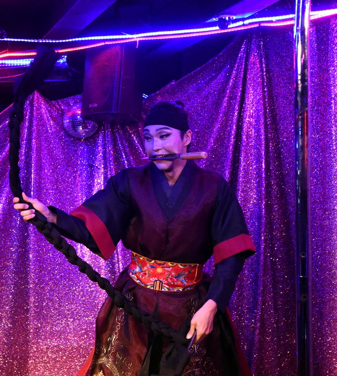 Tae's performance was a straight-up gut intermixed with performances typical of a drag show, including lip synching.