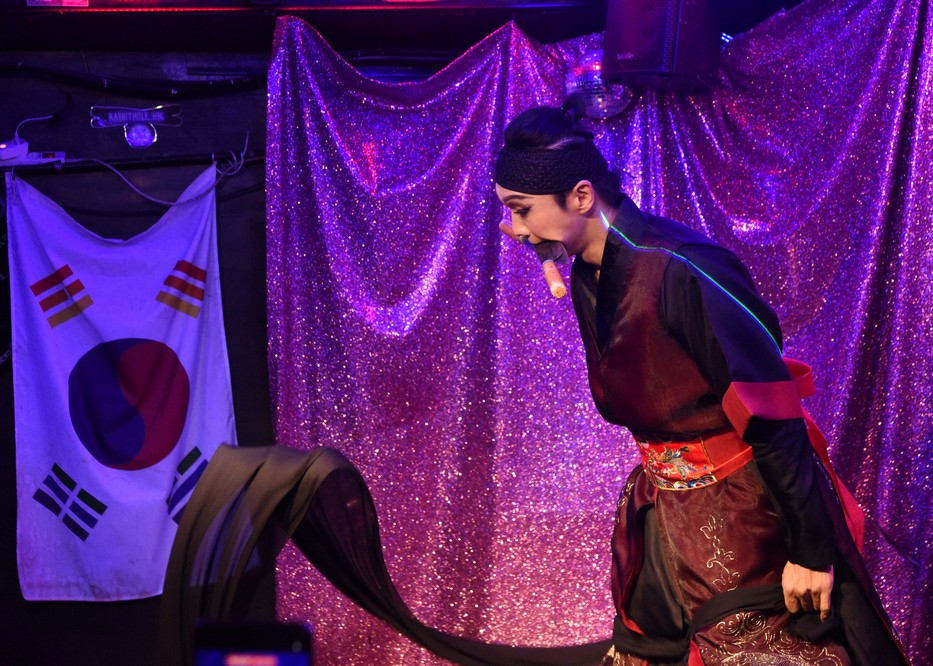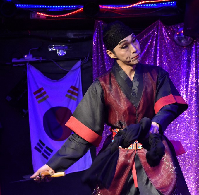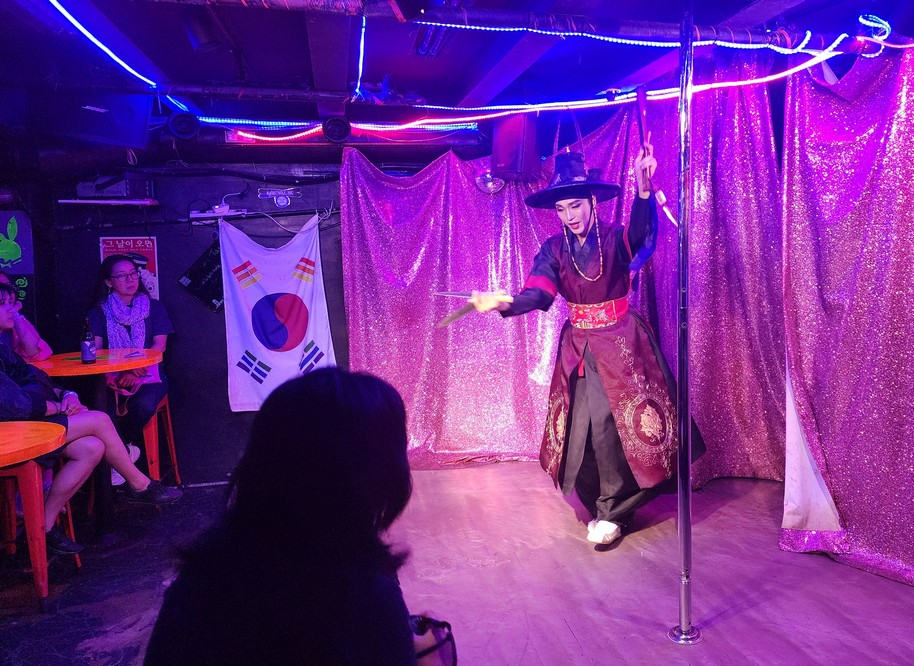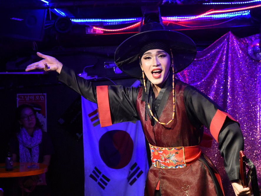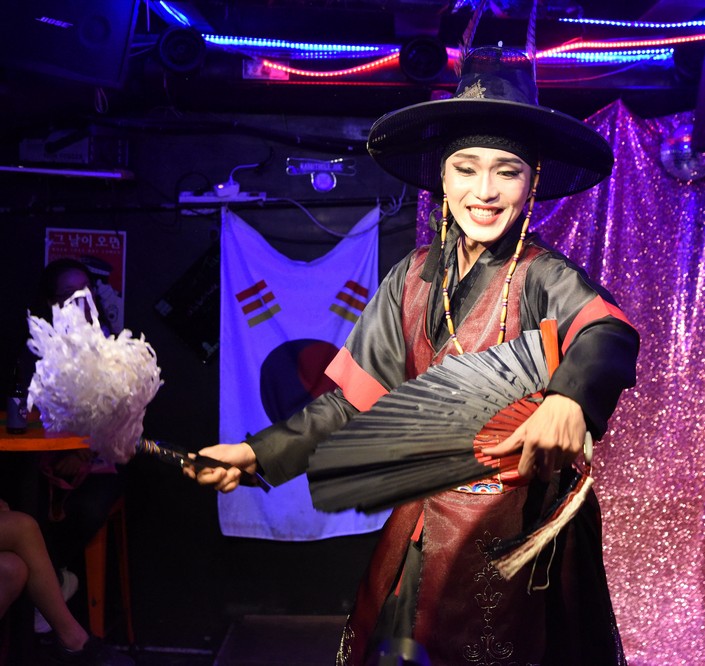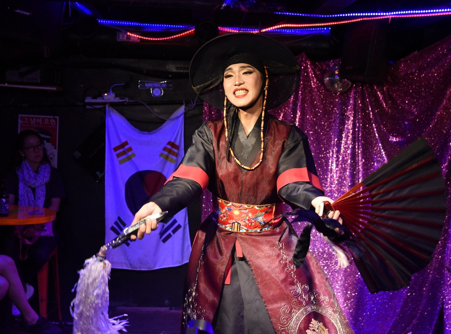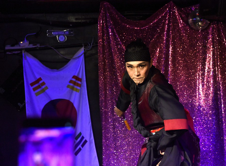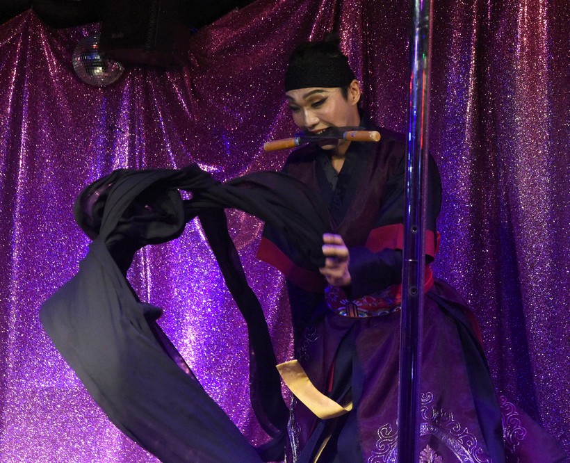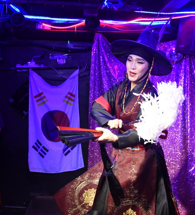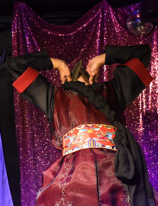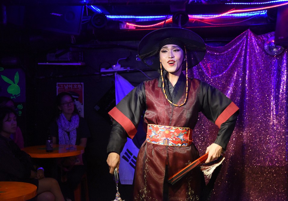 Tae's performance was a straight-up gut intermixed with performances typical of a drag show, including lip synching.