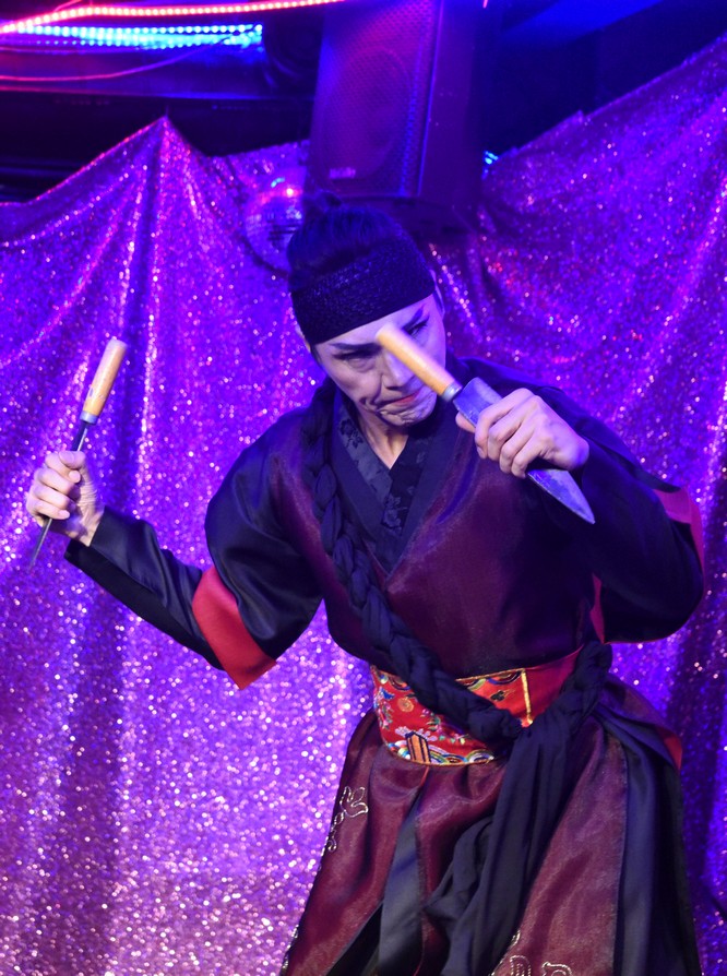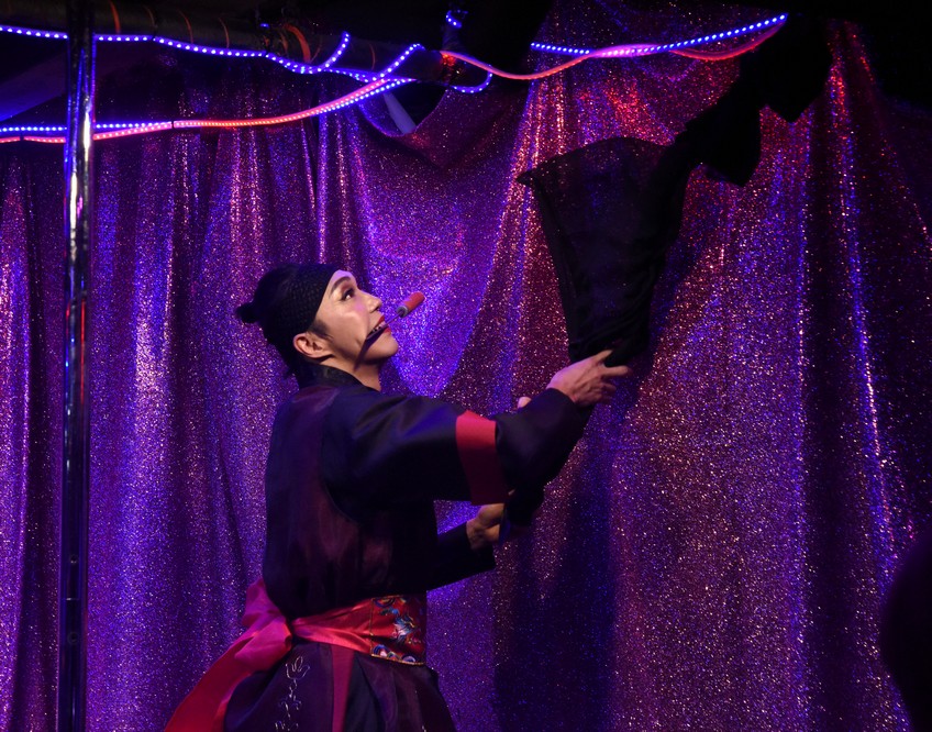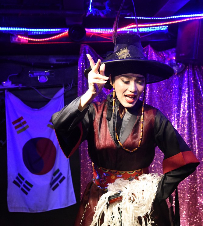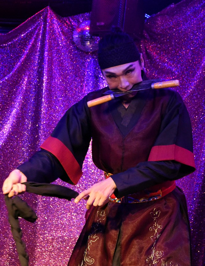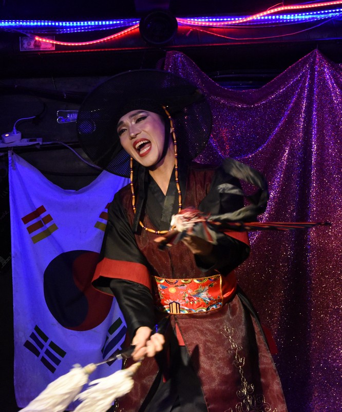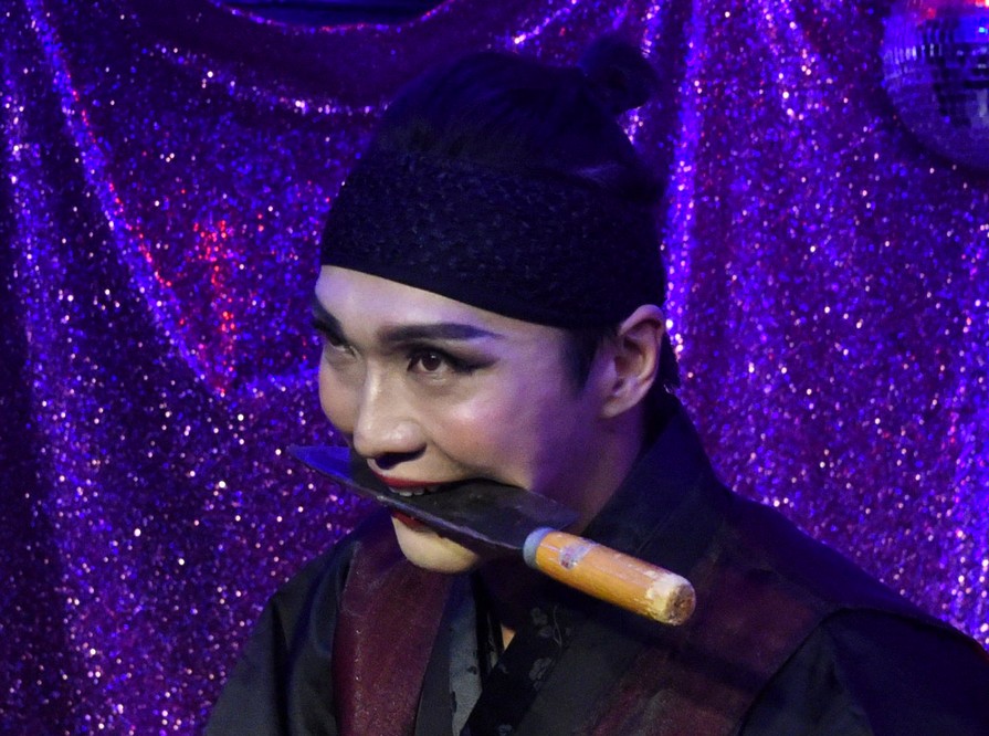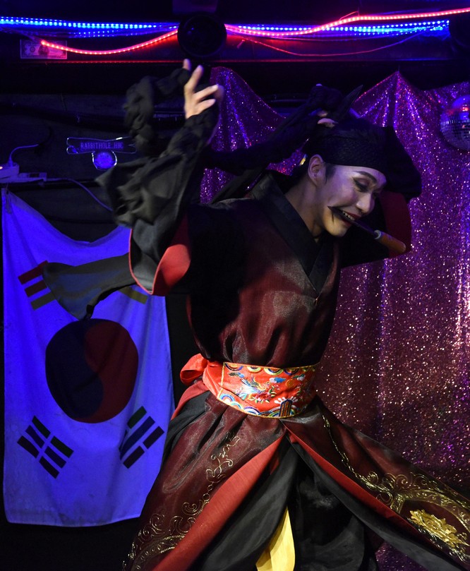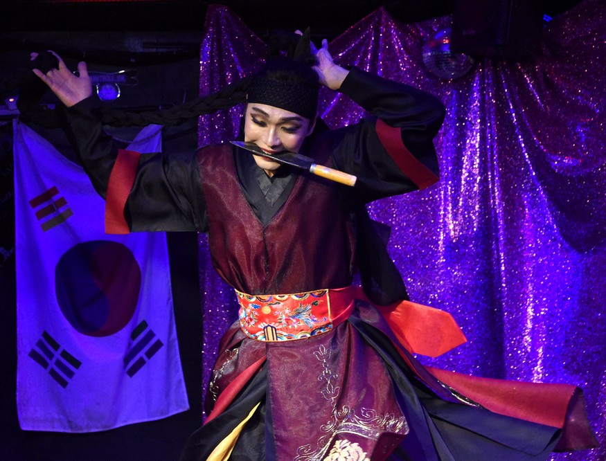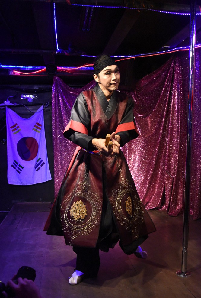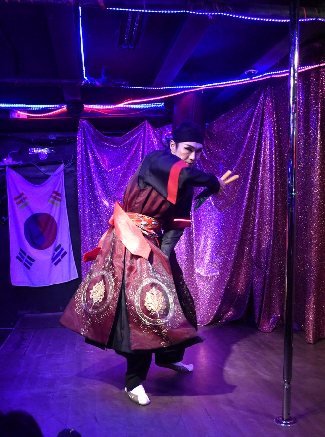 Tae's performance was a straight-up gut intermixed with performances typical of a drag show, including lip synching.