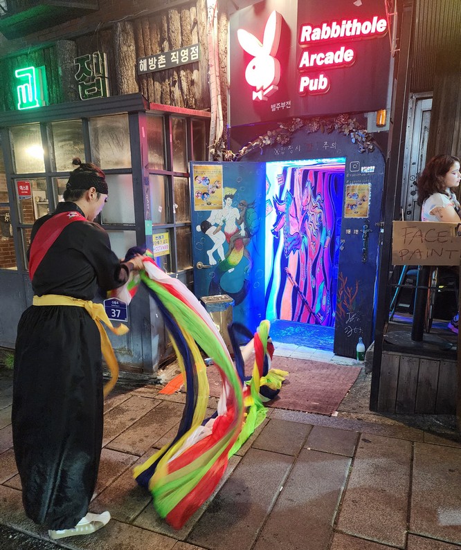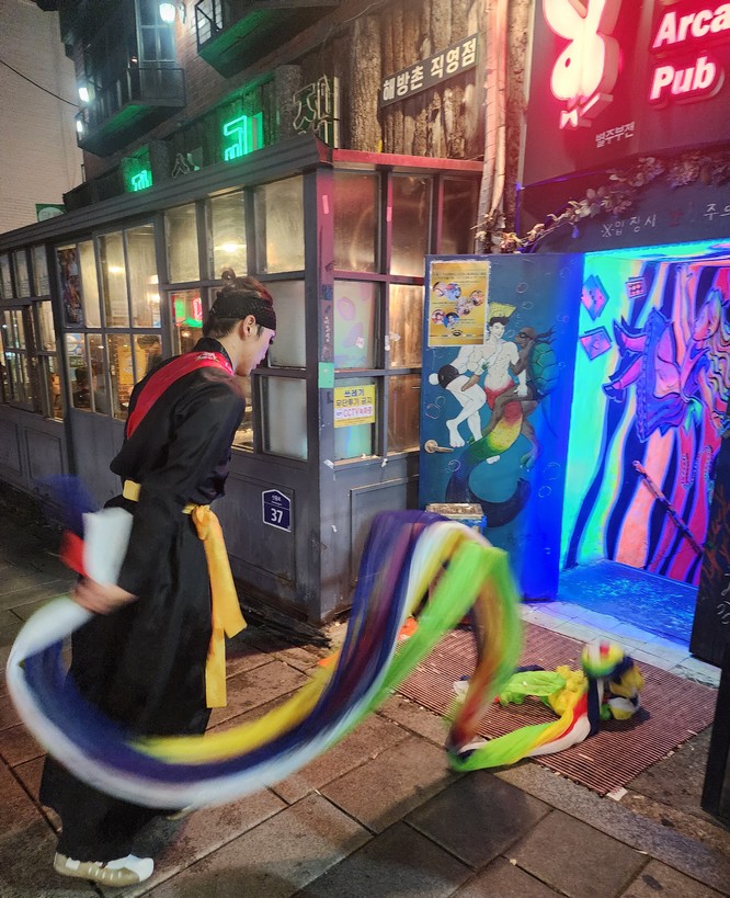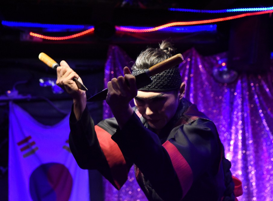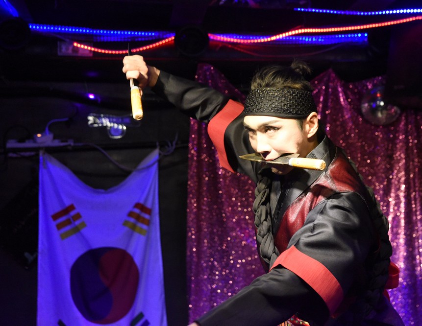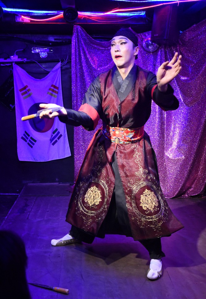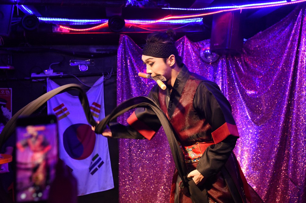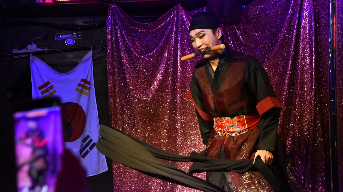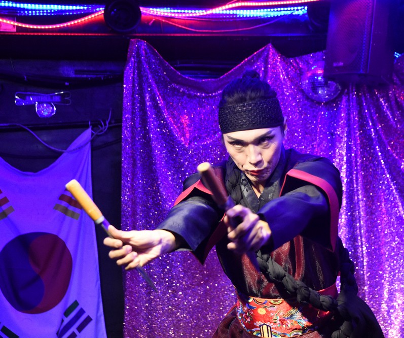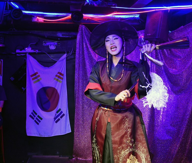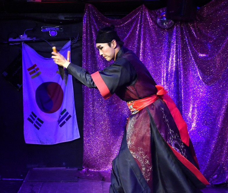 Tae's performance was a straight-up gut intermixed with performances typical of a drag show, including lip synching.