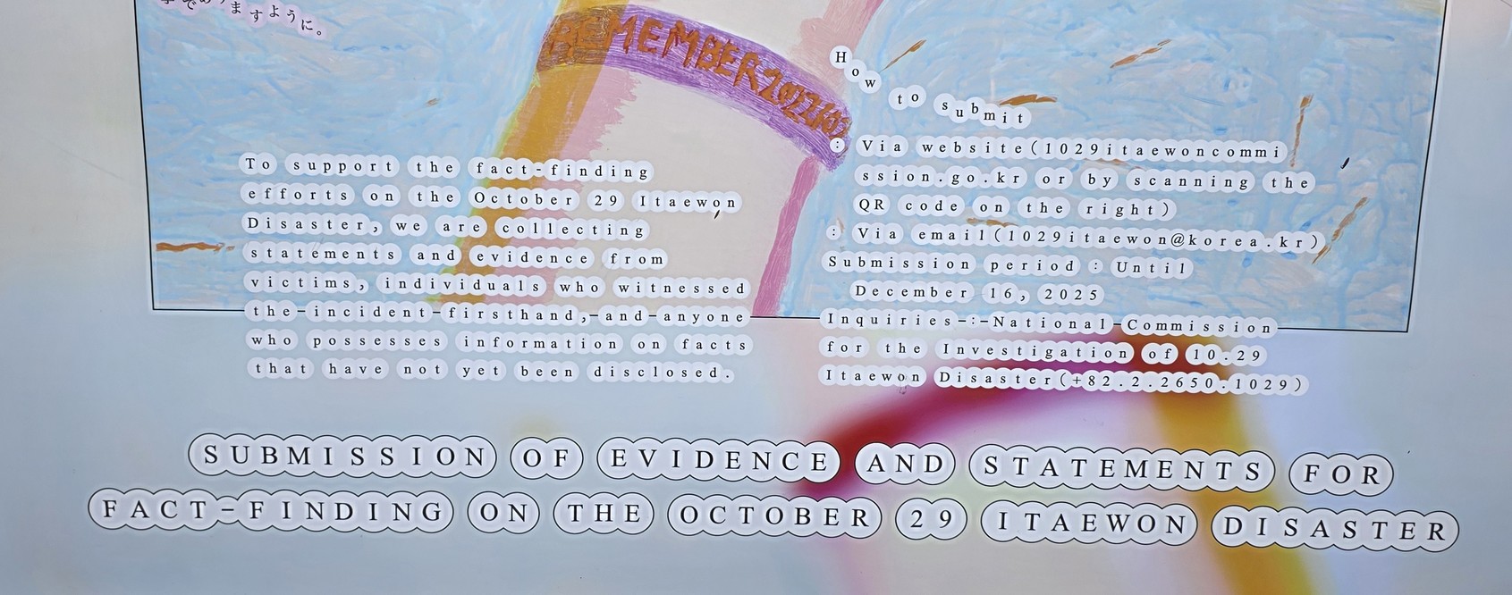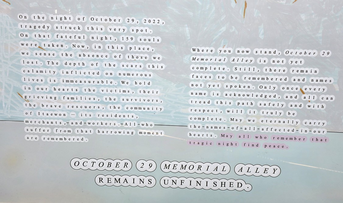 Then I hurried ahead to Itaewon Station, where I had a quick look at the memorial signs.