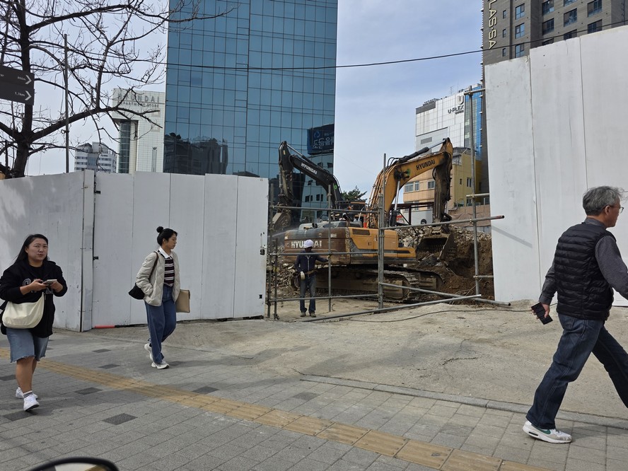 Remember that old hulk that was right on the edge of Sinchon Rotary? It's finally been torn down.