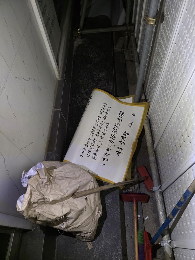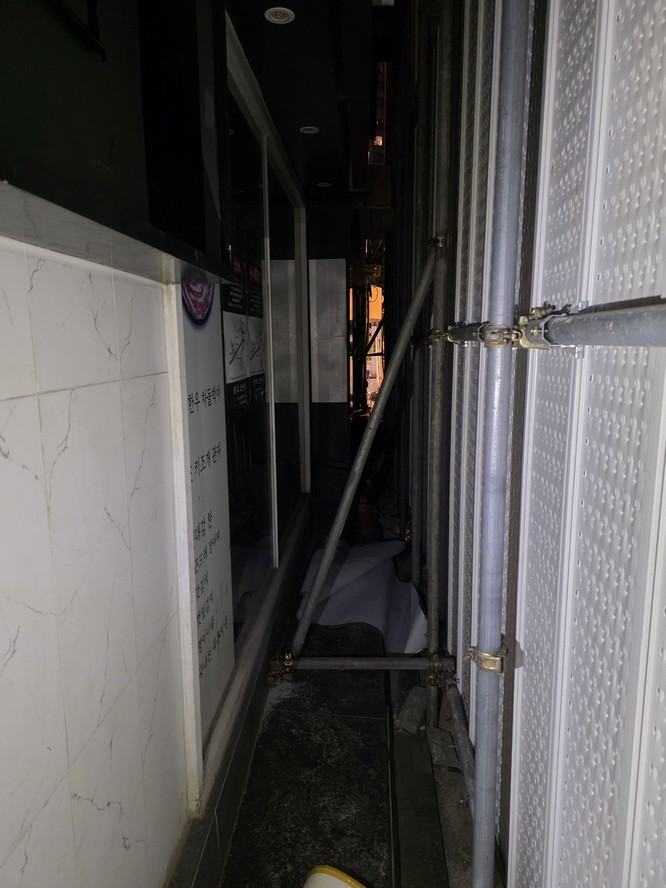 I was moving around behind this hoarding. THe orange light in the distance is freedom.