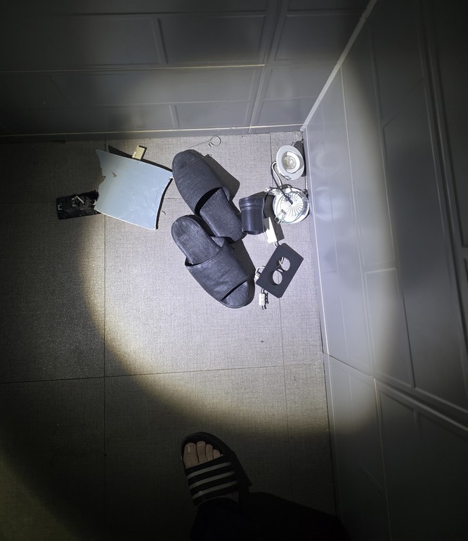 Motel slippers. Yes, I was also wearing slippers. I didn't take the time to put on real shoes on my way to the vet.