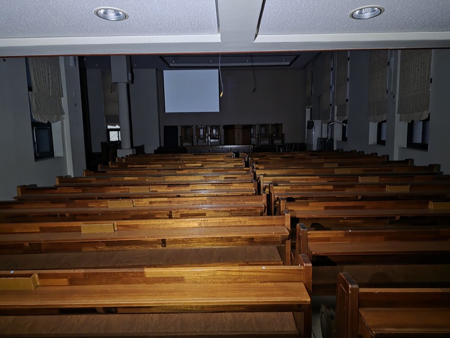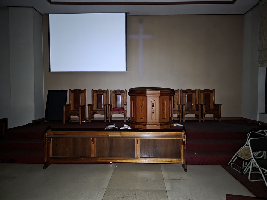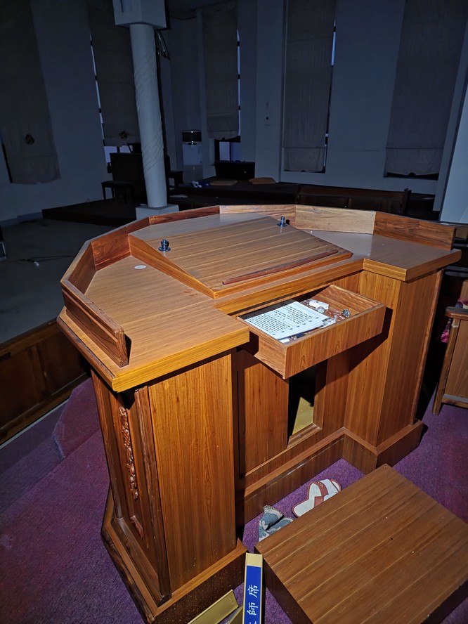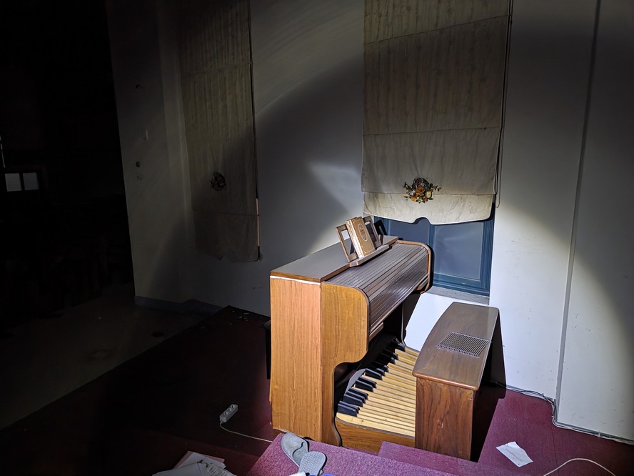 A church organ. Curious if I could have made noises on it if I opened the keyboard and stepped on the pedals.