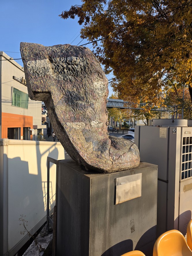 I drove along, and in a corner of Yeonhui-dong I passed this sculpture of a shoe.