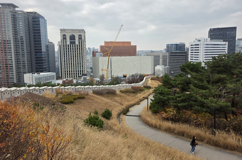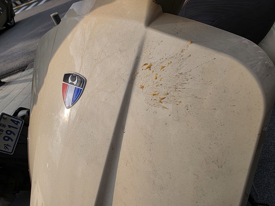 A week or two earlier, a tree had dropped a ginkgo berry on me. Here's where it hit, and it splattered partly on my left gloved hand.