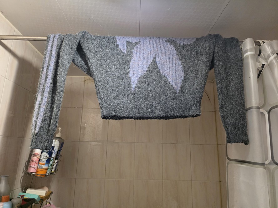This sweater was drying in the washroom, and I got the impression Jeff and Trash didn't know whose it was.