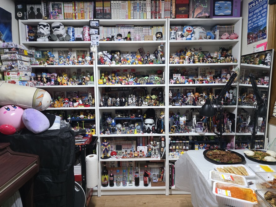 Trash's wall of figurines.