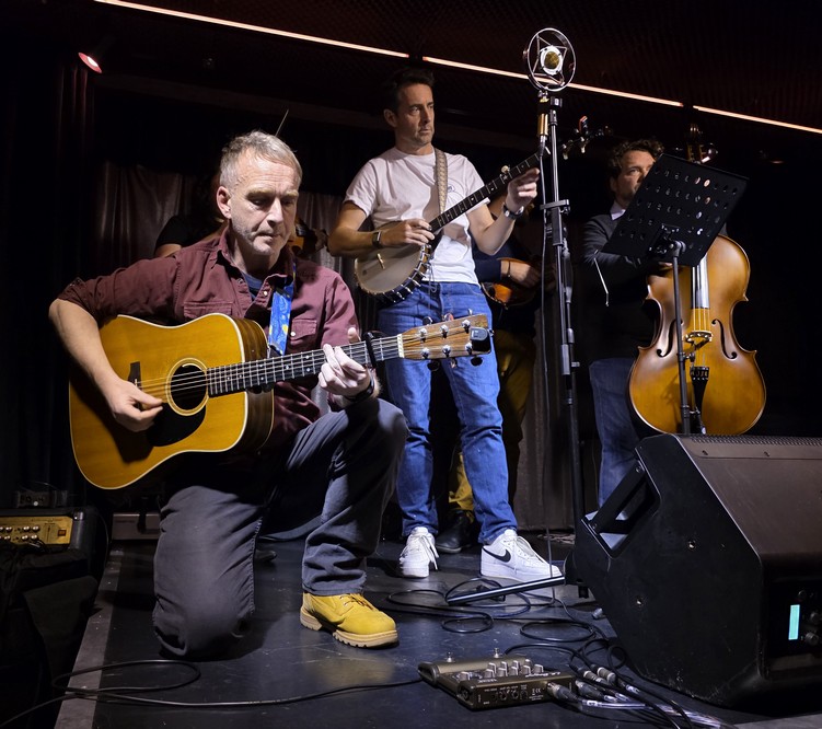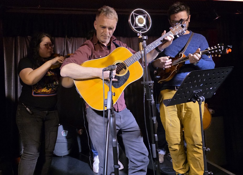 Next, setting up for Red Dawg String Band.