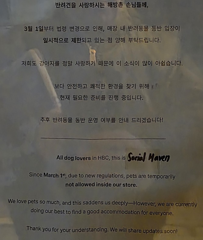 After they passed a law to allow dogs (and cats) into restaurants, the law backfired and places started having to ban animals.