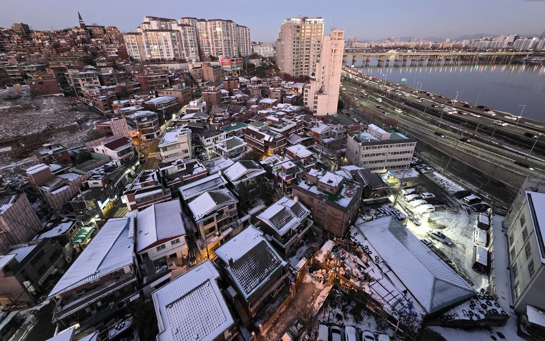 I realised quite quickly that if I were to get over to this rooftop, I might get a really interesting view of Hannam New Town under a coat of snow. And yes, I kind of got that, but it could be more snowy. Will keep an eye out.