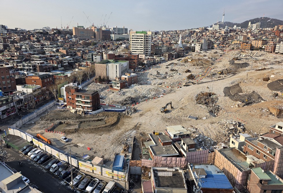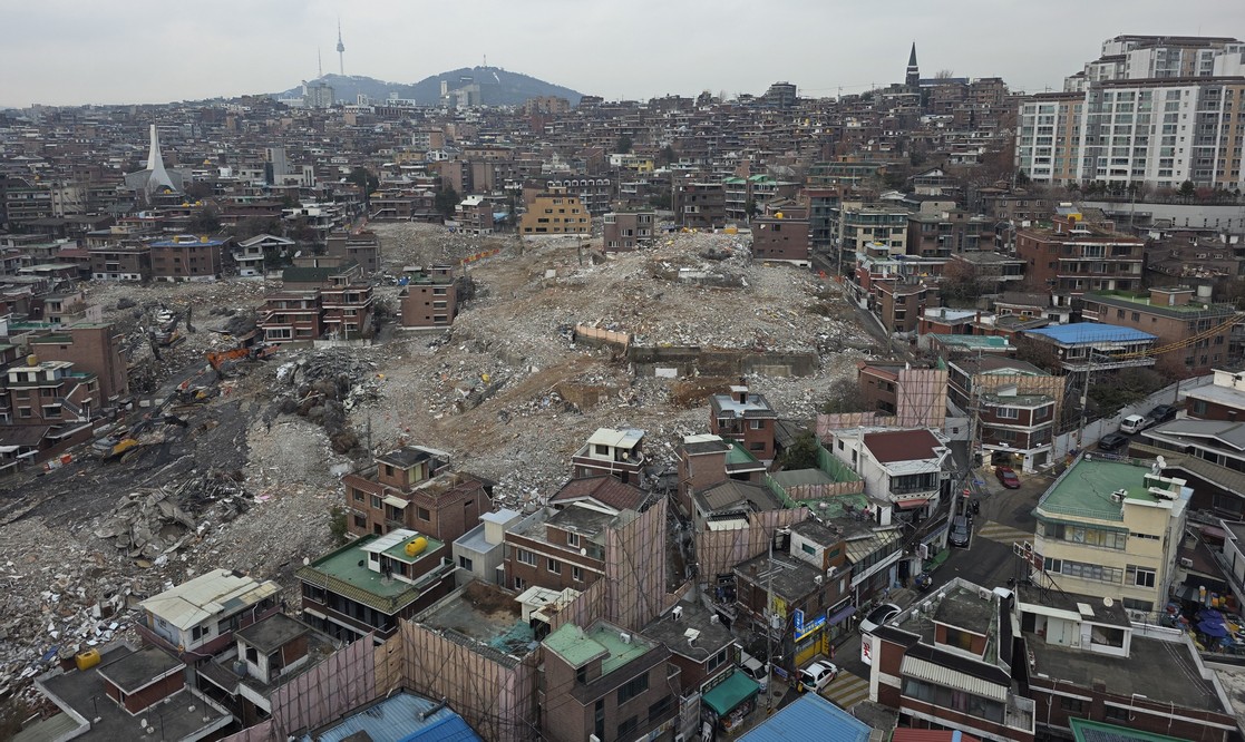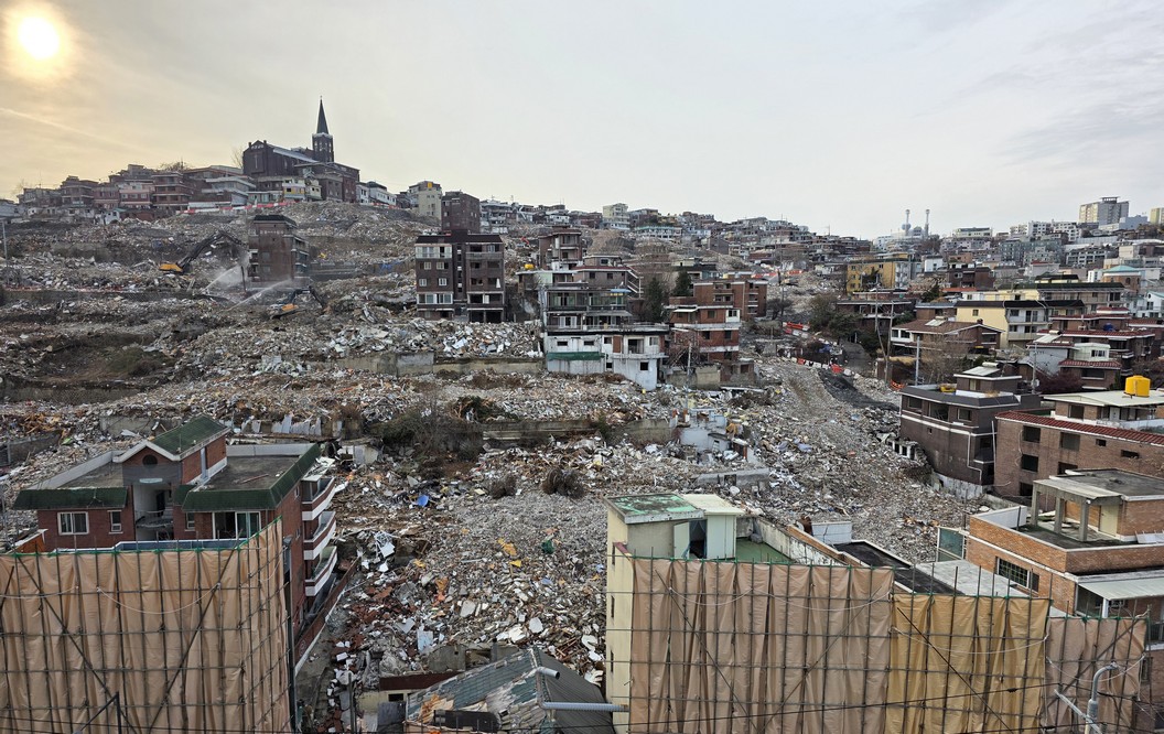 Here's my view of Hannam New Town's demolition from the eastern side, on a good roof.