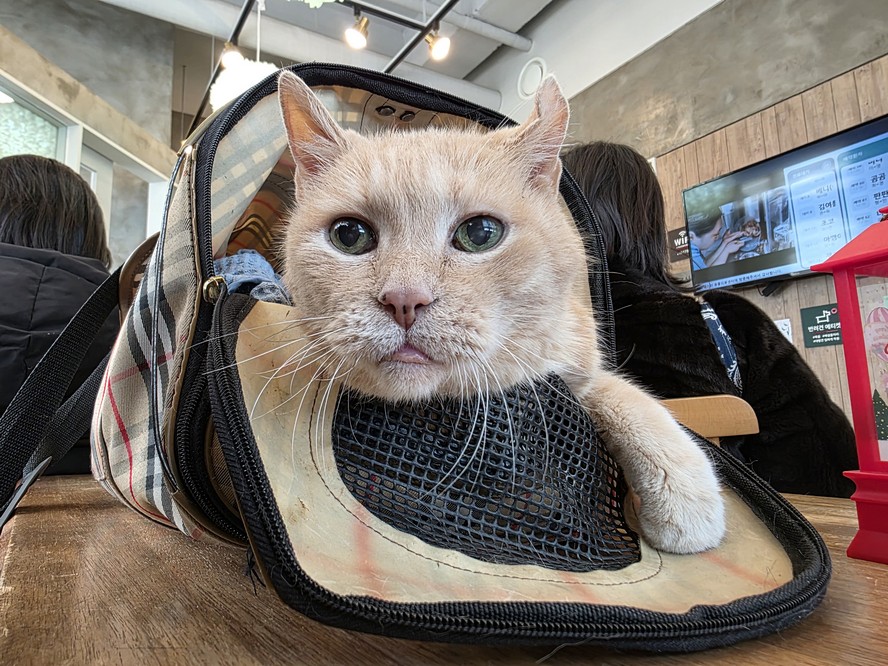 On my way out of the moon village, I ran into a little group of three cats. All of them are at least partly orange, so they may be related. One was extremely friendly, and the other two didn't trust humans. Especially oddly, Coetzer swears he ran into the exact same friendly cat inside Baeksa about three years ago. I've seen his picture, and it's hard to rule out the possibility that they are the same cat. But that's pretty old for a nondomestic cat in Korea, let alone one that still likes humans.