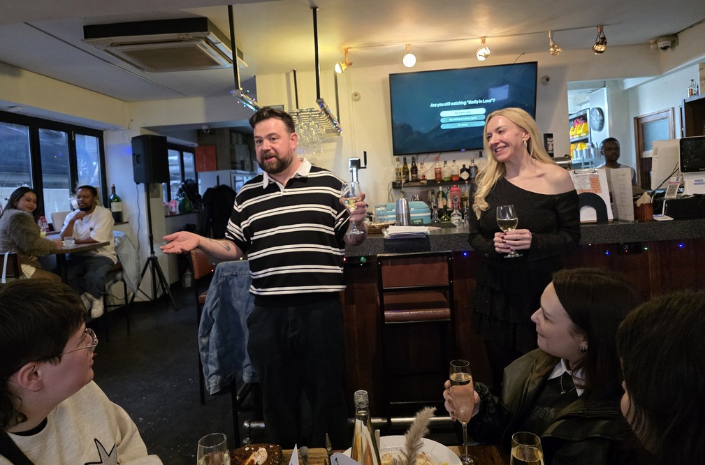 My long-lost distant cousin Jill and her husband, my brother-in-law Pete, are moving back to Scotland, so I showed up at Sauce for a farewell party.