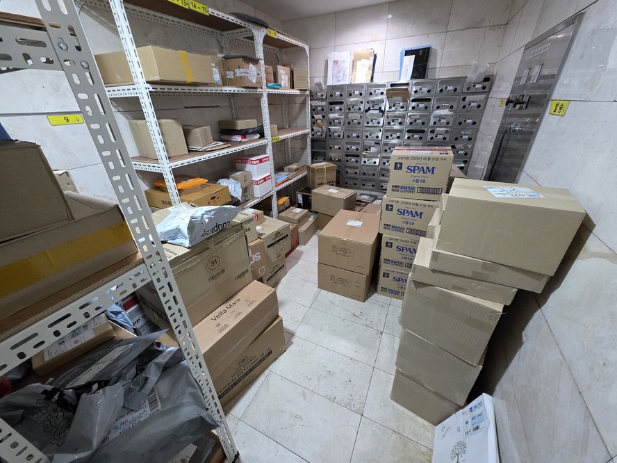 A contact sent me a delivery, presumably within the Kim Young-ran limit, but when I looked around I couldn't find it anywhere. The last chance was it was in this mail room in the lobby. I took this photo, and sent it to him, and he was able to spot his package.