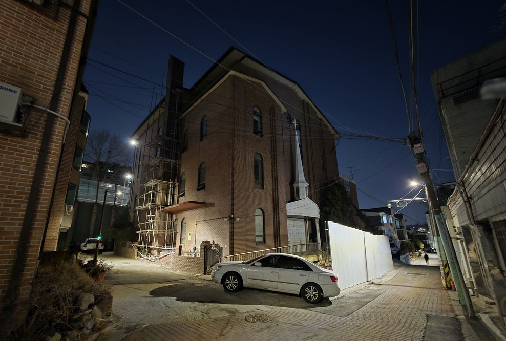On the way home from the vet, I stopped in Jungnim-dong, where I'd been observing advances in destroying the area. Although I'd been focusing on one side of the area before, this time I went in under another blanket, and entered into an alley full of old Hanoks converted into restaurants, as well as a church.
