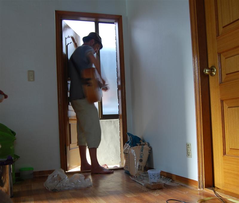 Dinner and a meal for Millie. Buster was too afraid of the guitar sounds to touch his food.