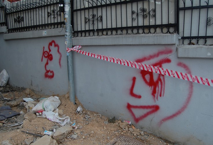 Looks like a hired goon had a bit of trouble drawing a skull.