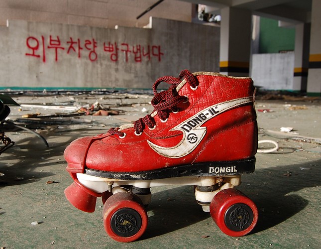 A fairly old-fashioned rollerskate.