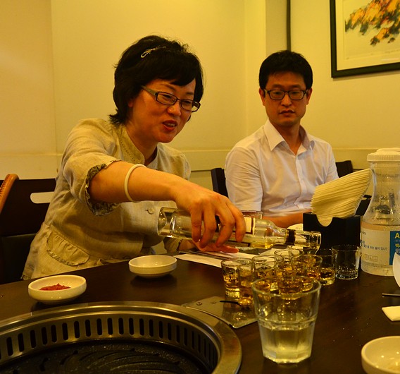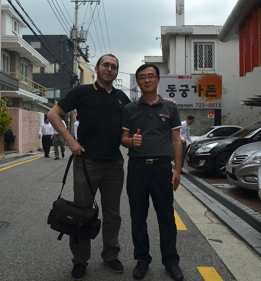 Our team leader, Park Nark-jong, is leaving to be the head of the Korean Cultural Center in Vietnam. Everyone thought we looked like a couple in our polo shirts.