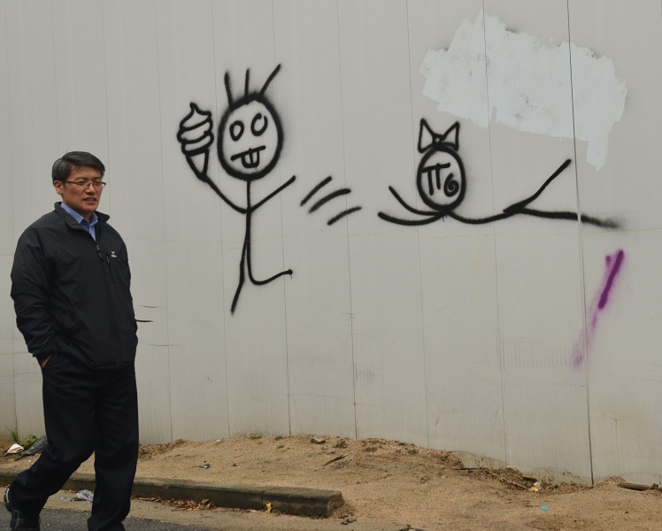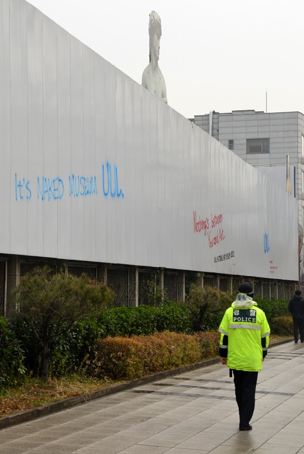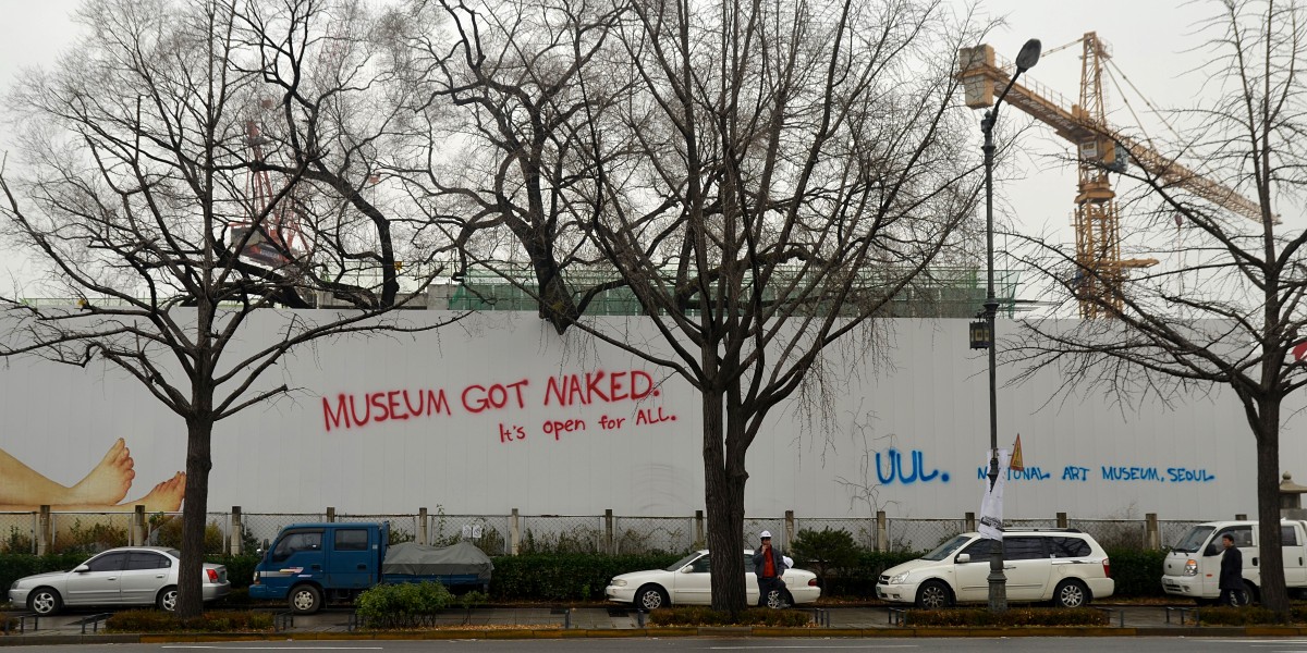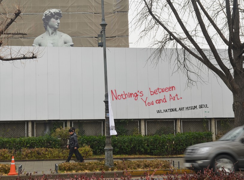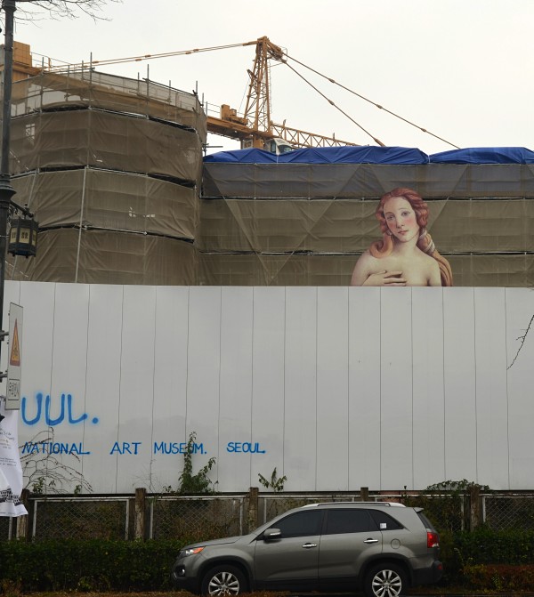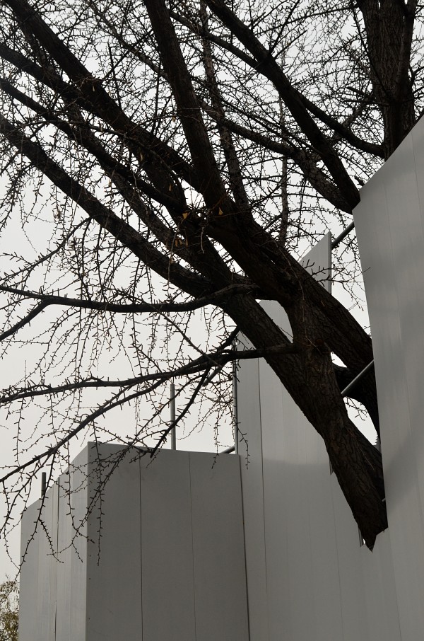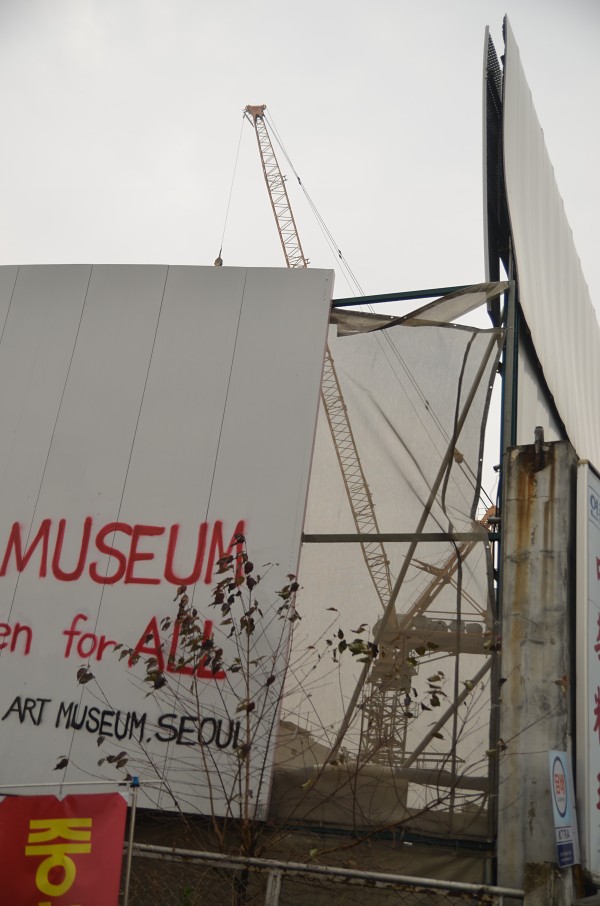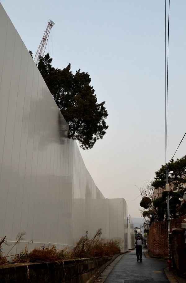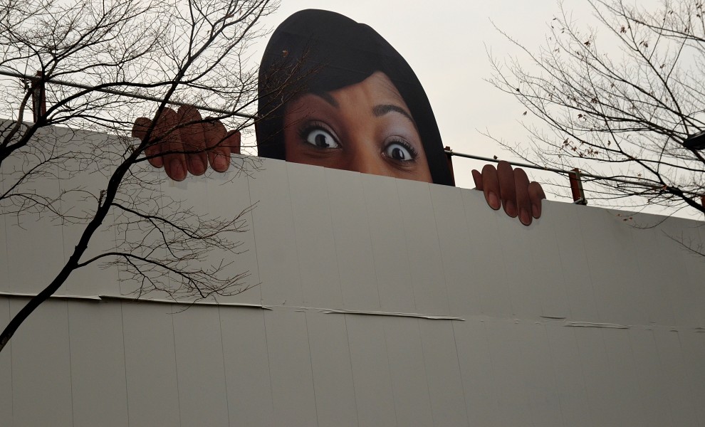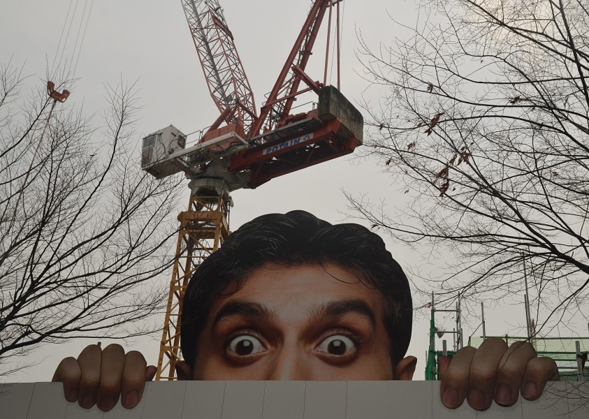 Not even construction fences patrolled by giant works of art.