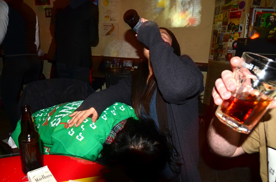 Wolly was out of the army for the holidays, so he put on a wig and went out drinking.