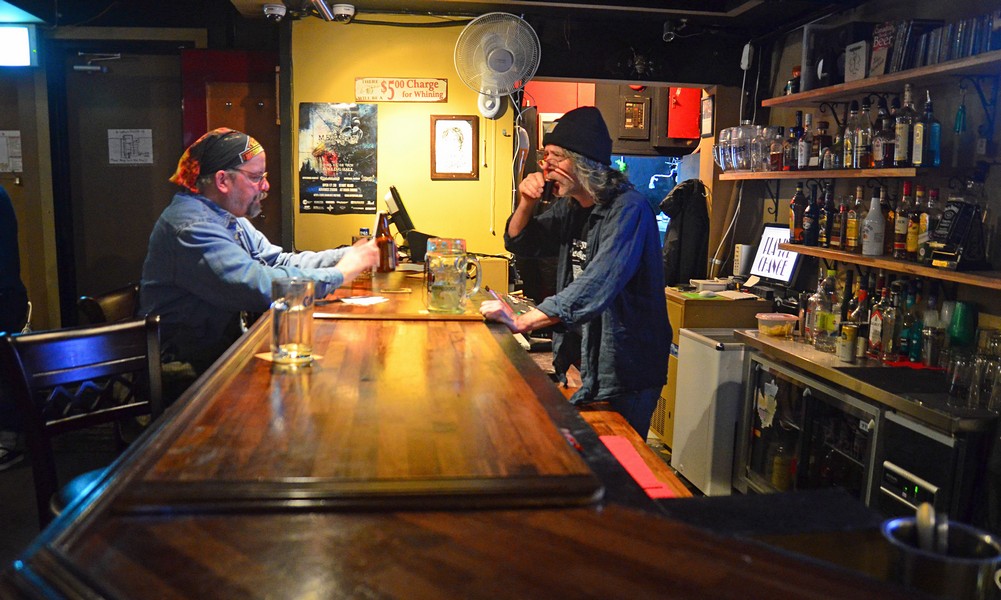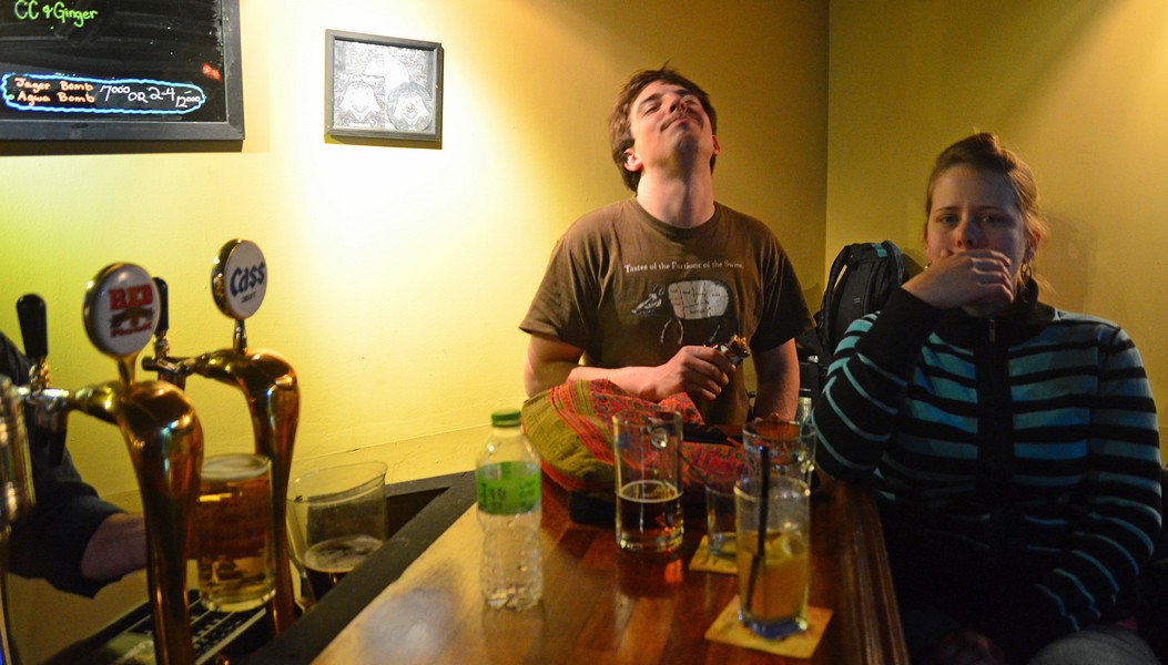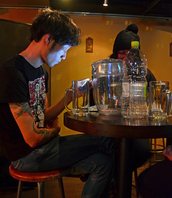 Over at the bar.