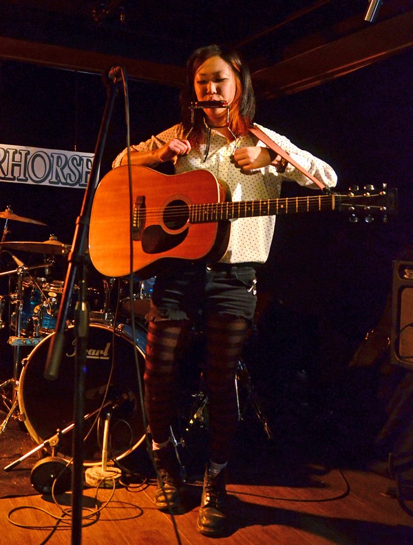 Just Jina on her own, warming up on harmonica.