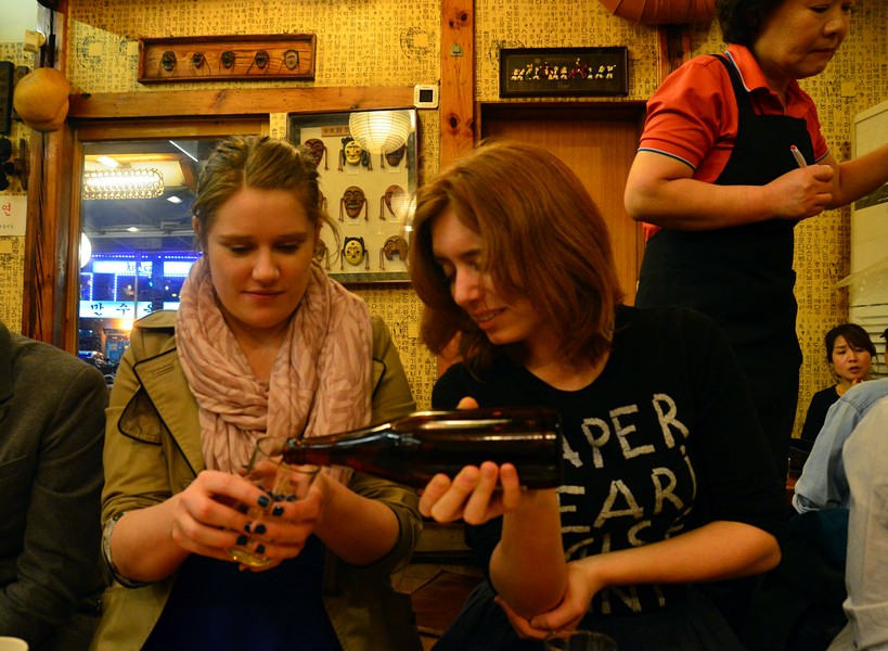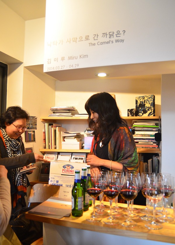 Miru was inside serving free wine and beer.