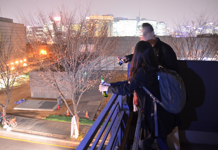 We snuck up to the roof. I figured if anyone wouldn't mind, it would be Miru.