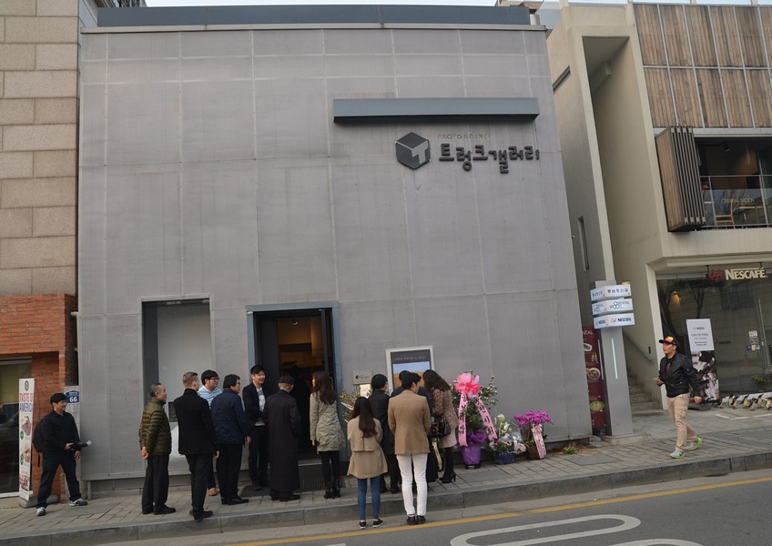 A crowd was gathered outside.