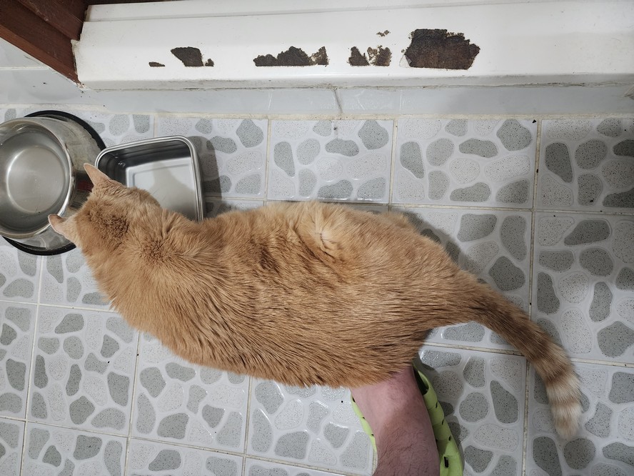 Buster's cat butt entraps my foot again.