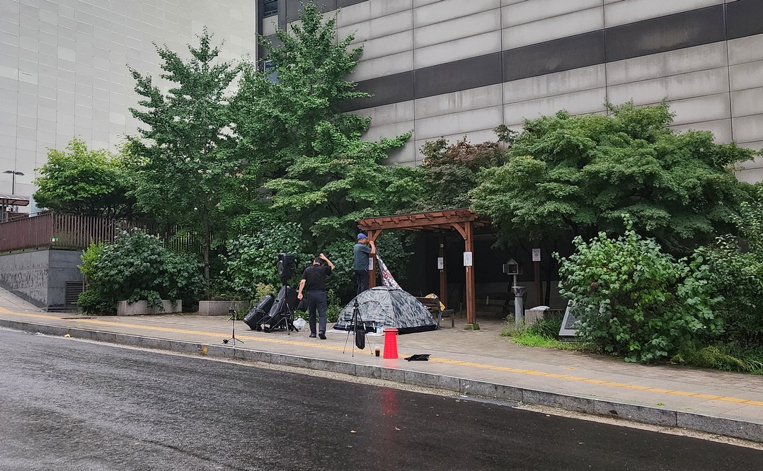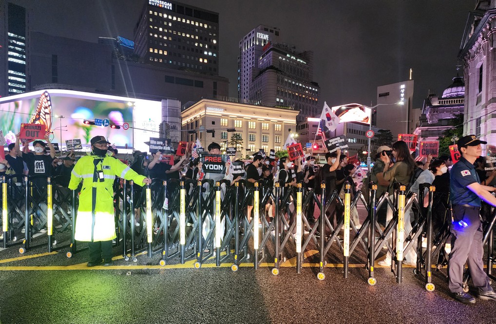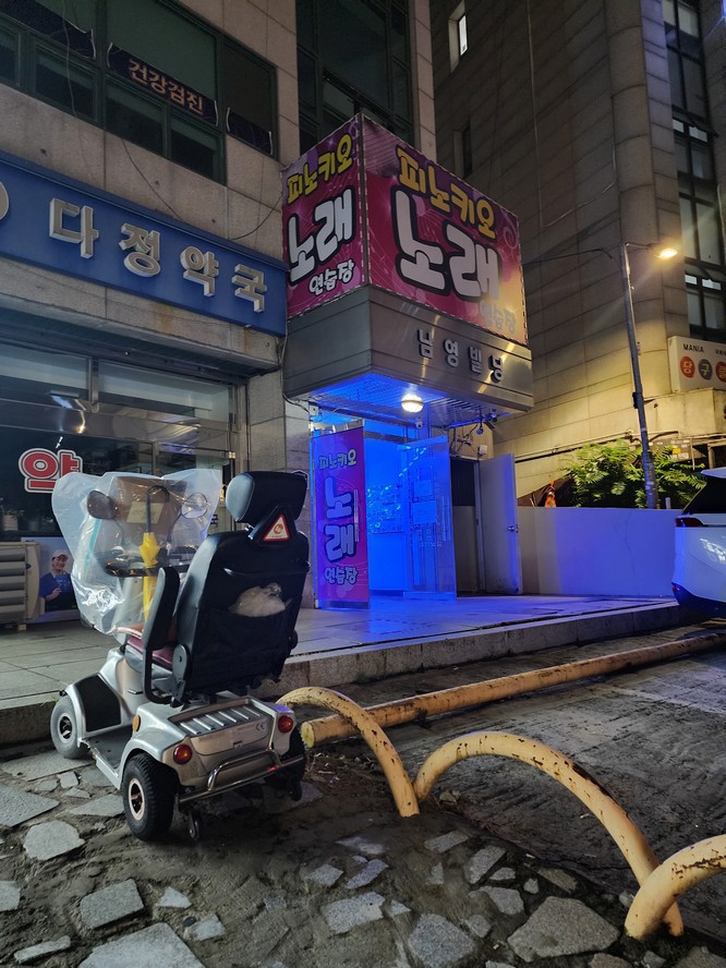 These assholes blocked off a pretty major road next to Myeongdong. I asked a cop how long they'd take to pass by, and he said an hour, so I U-turned.