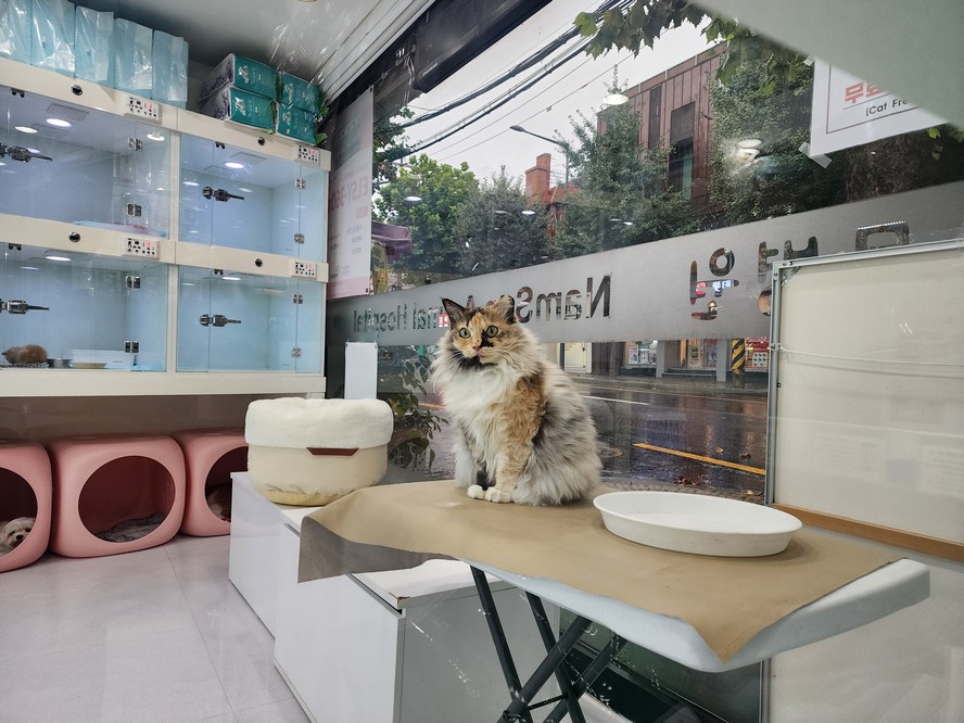This is the cat at my local vet, who Buster (and Millie before) would view as a traitor.