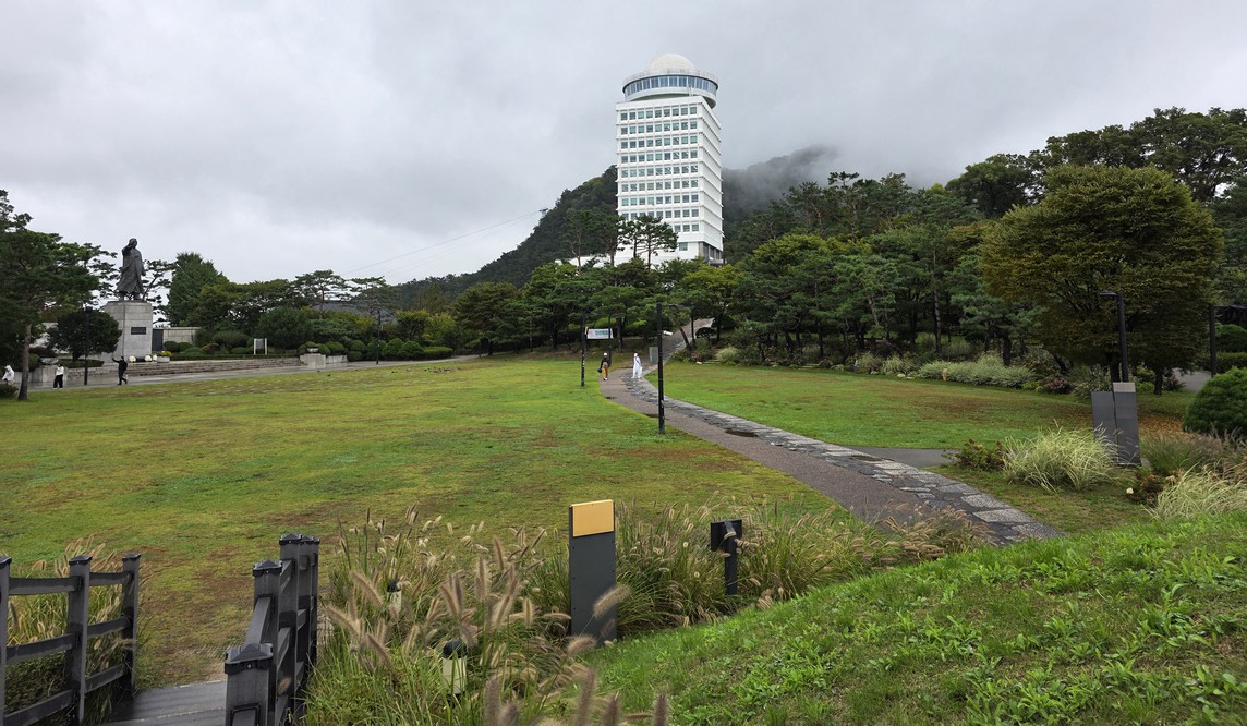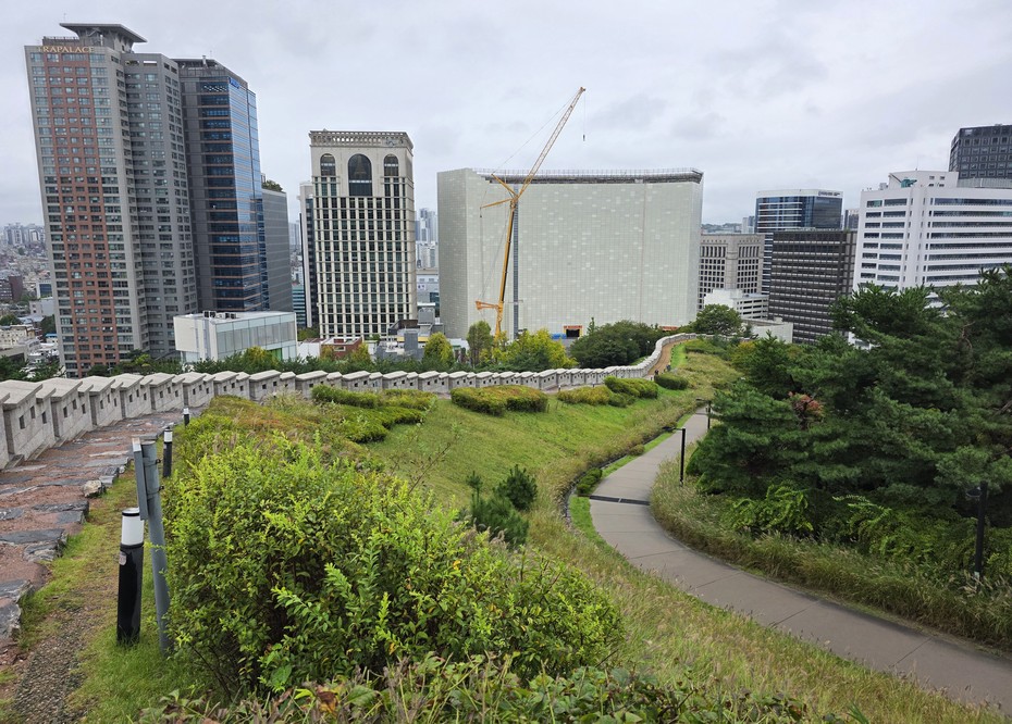 A glance uphill. The tower was not visible behind the cloud cover.