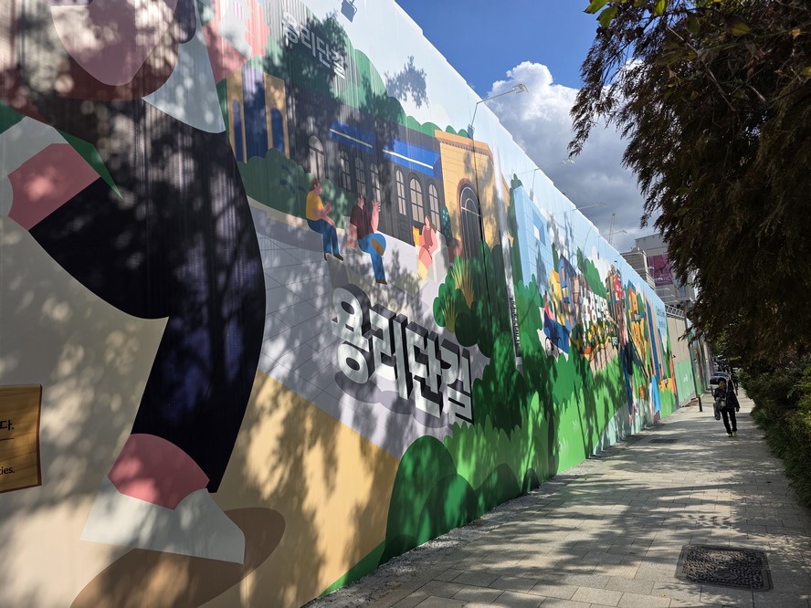 At a construction site next door, they had all this art up on the hoarding advertising the many attractions of Yongsan. Like...Yongnidan-gil, which isn't even the first -ridan-gil of the area.