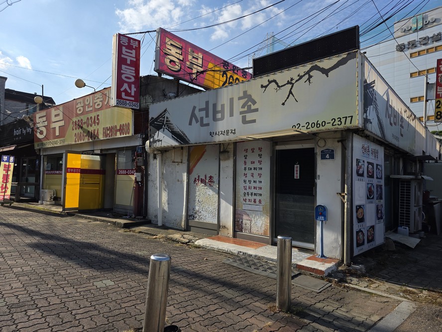 I went around the corner behind the cult building and found a neighbourhood with a lot more character. This Seonbichon restaurant sounds appealing, but I didn't know they had budae jjigae that long ago.