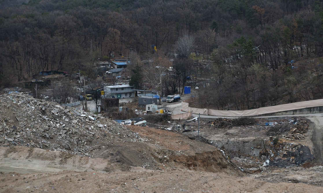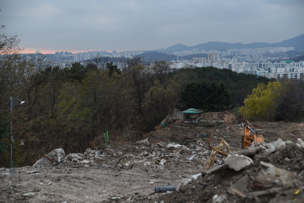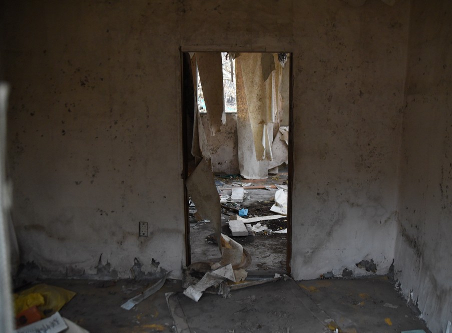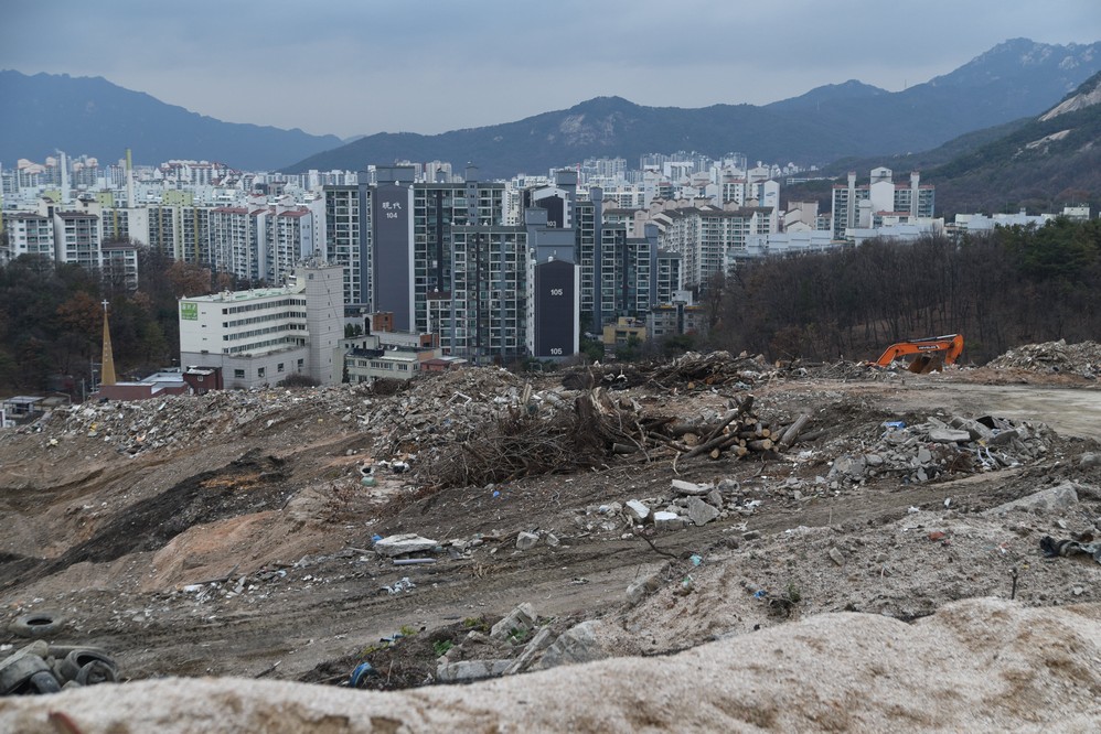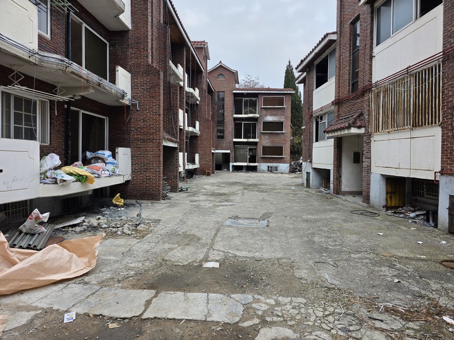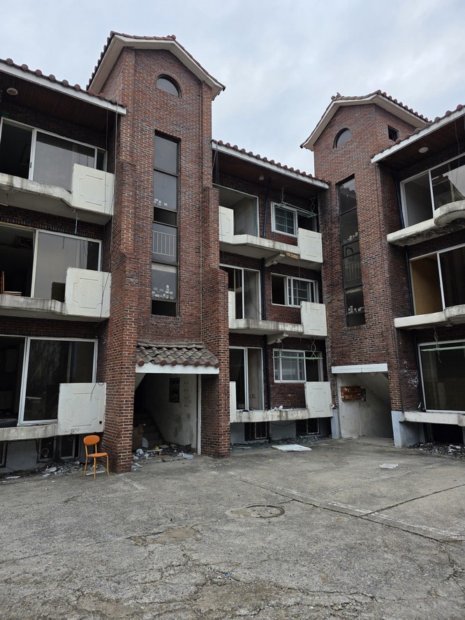 The roof to the apartment building here has been closed off, but I can still see most of the area. Almost everything has already been demolished. I should have come back earlier. But I would soon see it's not all gone.