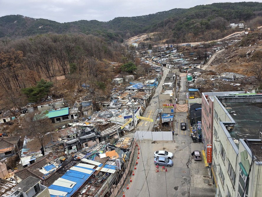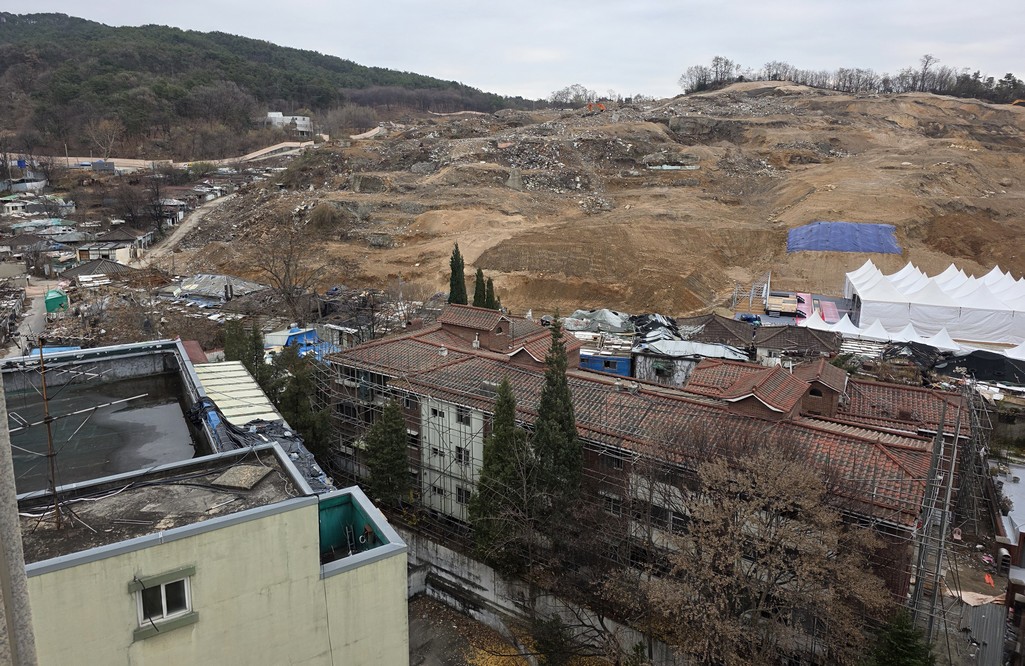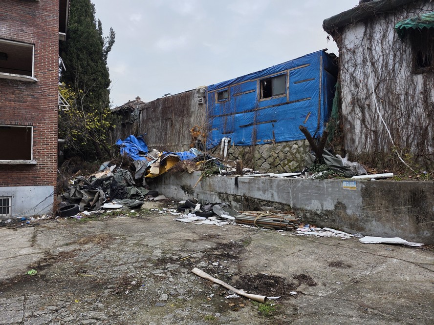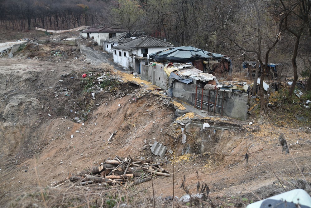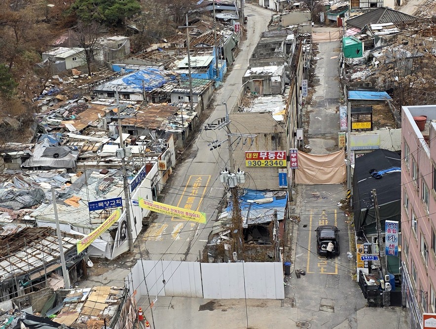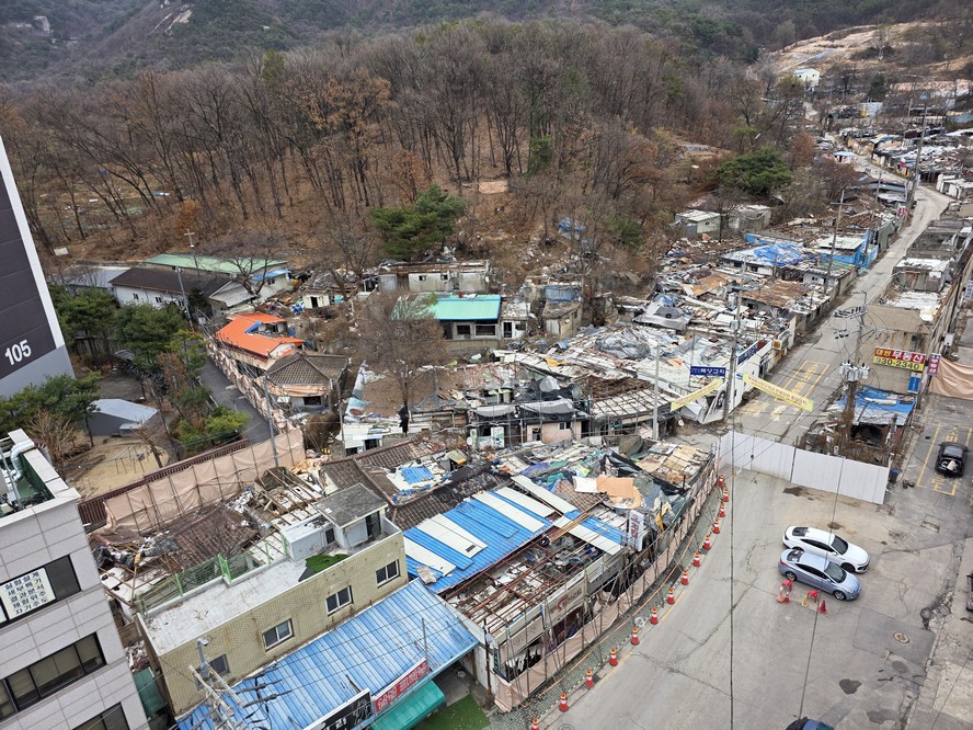 The roof to the apartment building here has been closed off, but I can still see most of the area. Almost everything has already been demolished. I should have come back earlier. But I would soon see it's not all gone.