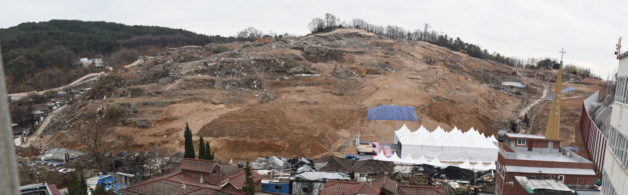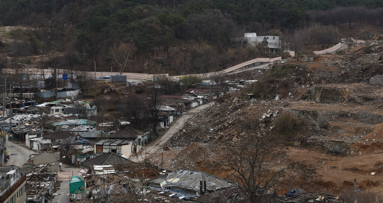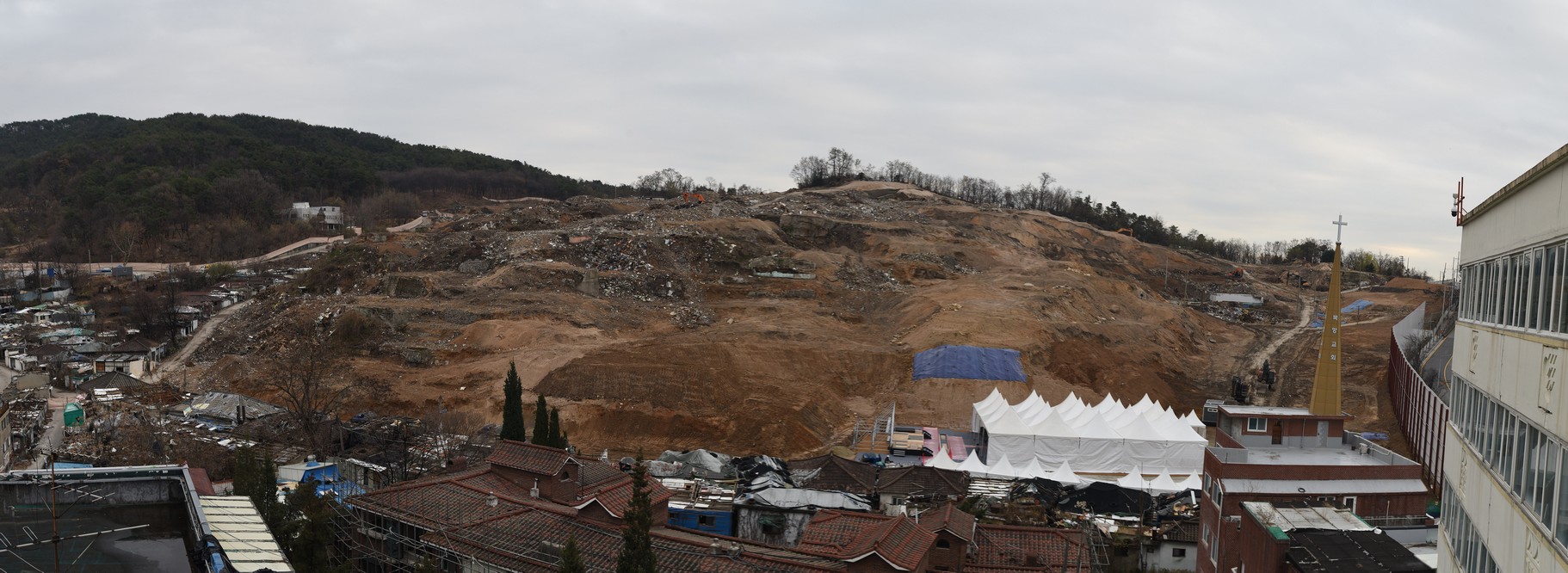 You can see a boundary marked by the street between what was demolished and what hasn't been yet. Also interesting to note the way they turned that hill into terraced flat landings through a handful of methods.