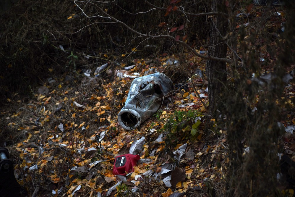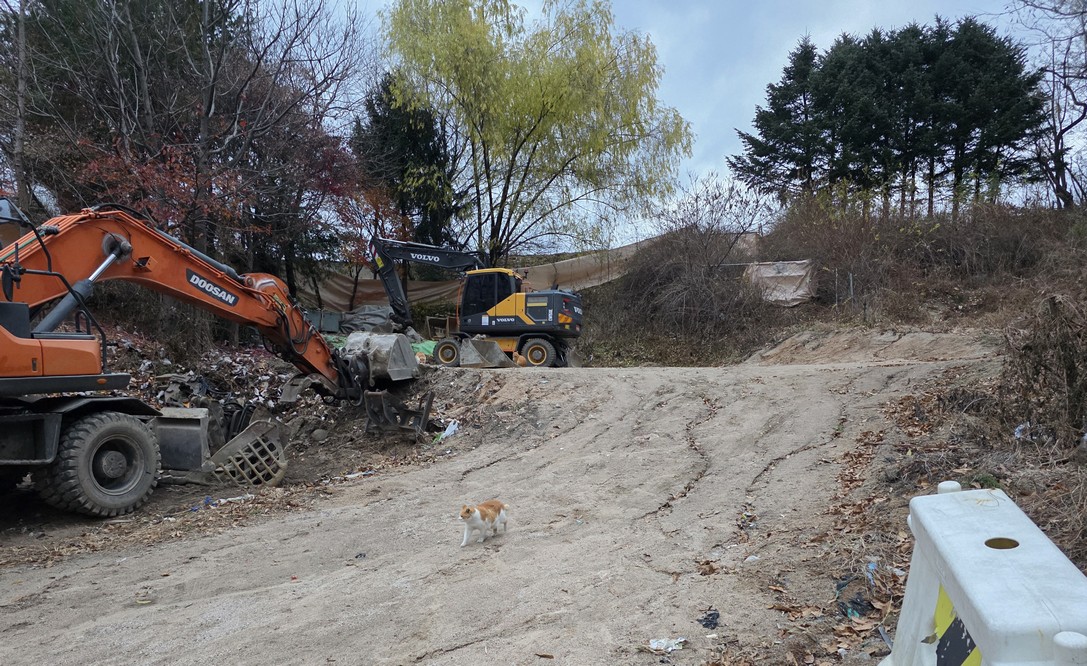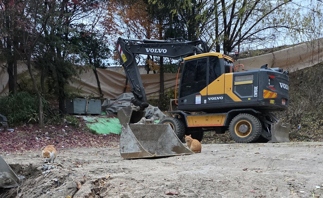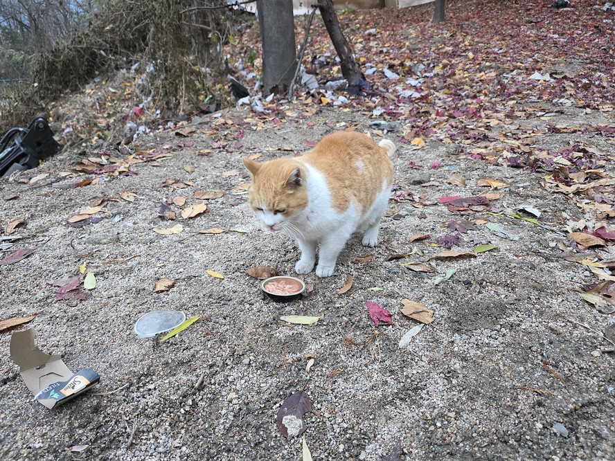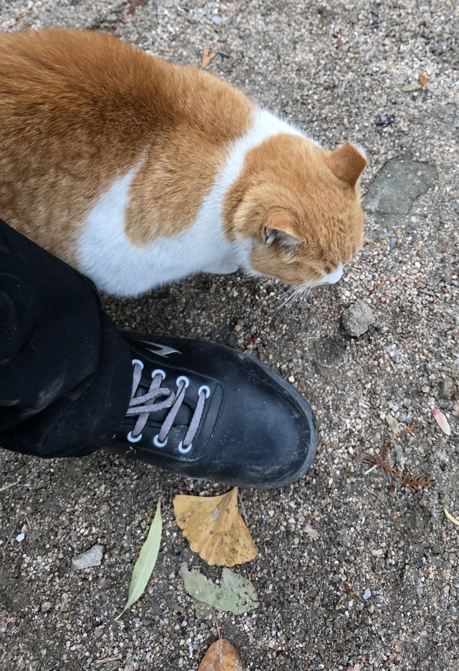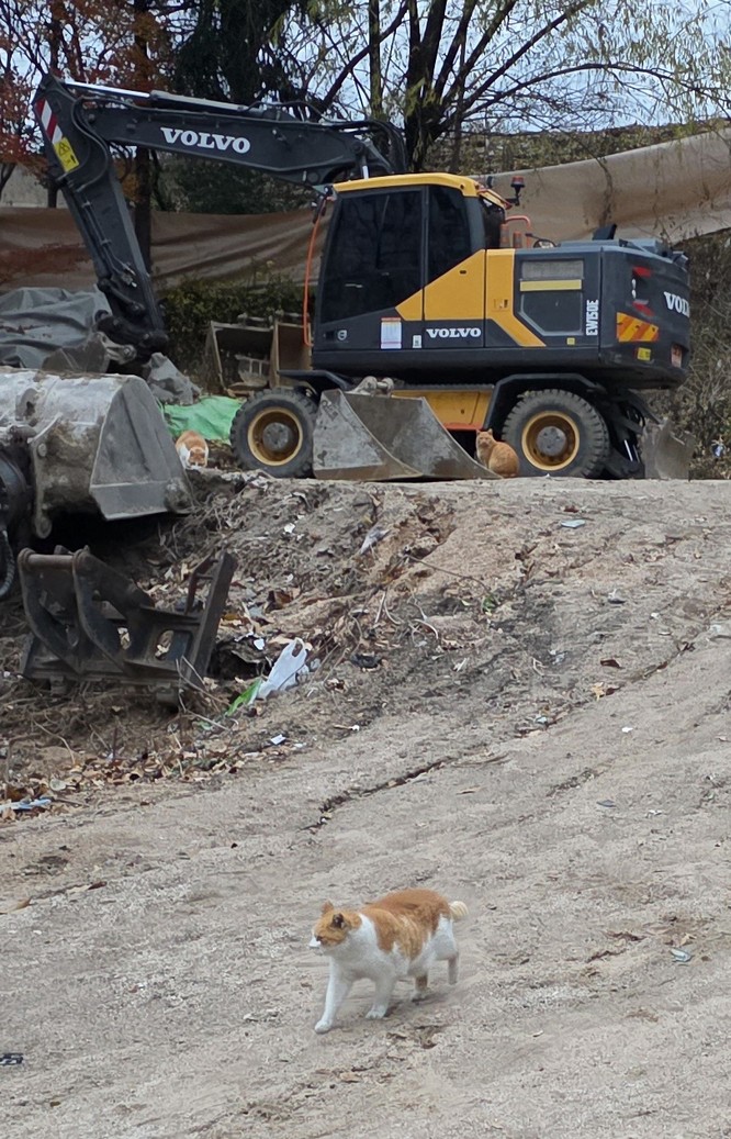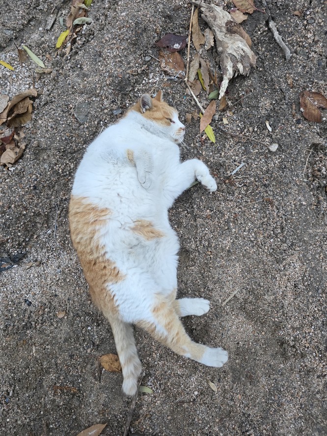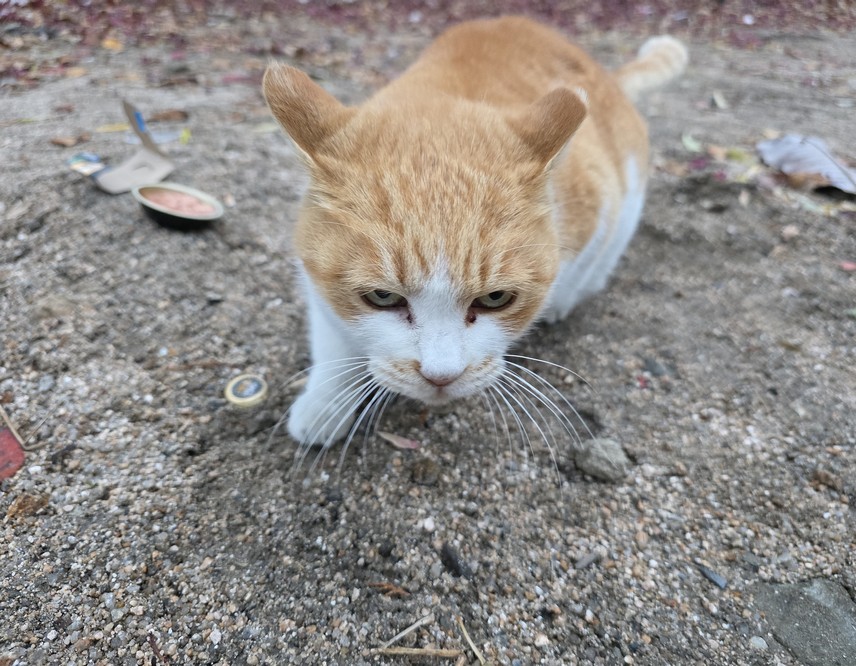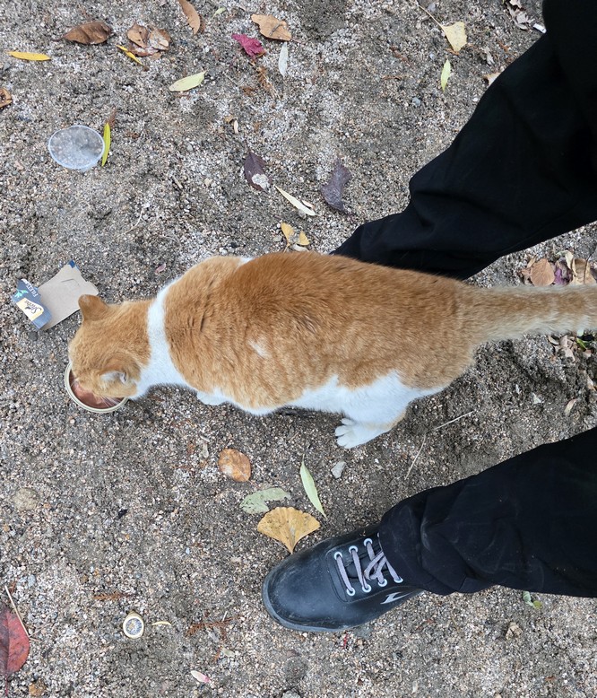 As I was exiting in the same place where I saw the cat before, I heard a cat meowing. He came out of this golf bag, right before I got this picture, and ran over to me.
