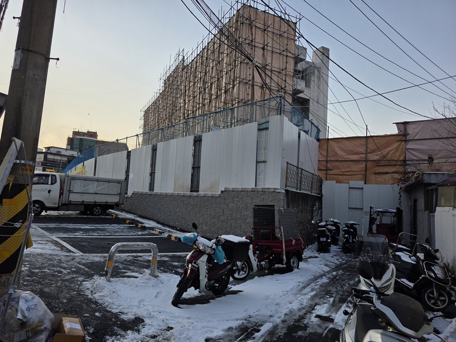 When I tried to get in and get to the roof of this building, I got a rude awakening: they'd completed the fence, so that you could no longer go around this corner and slip in easily.