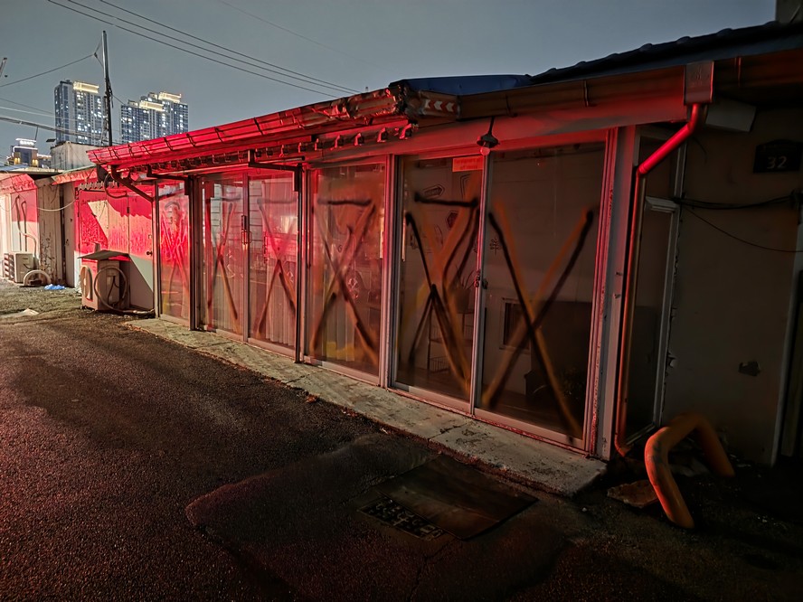 There's massive construction at the plaza in front of the train station, and I noticed they still decided to mark where the red-light district is (upper edge in what looks like yellow tape with black writing).