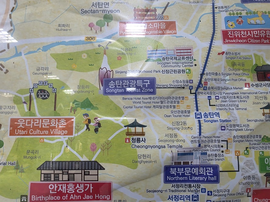 This tourist map of Pyeongtaek sure makes that little river peninsula look inviting. Too bad there are big fences up and Americans on the other side.