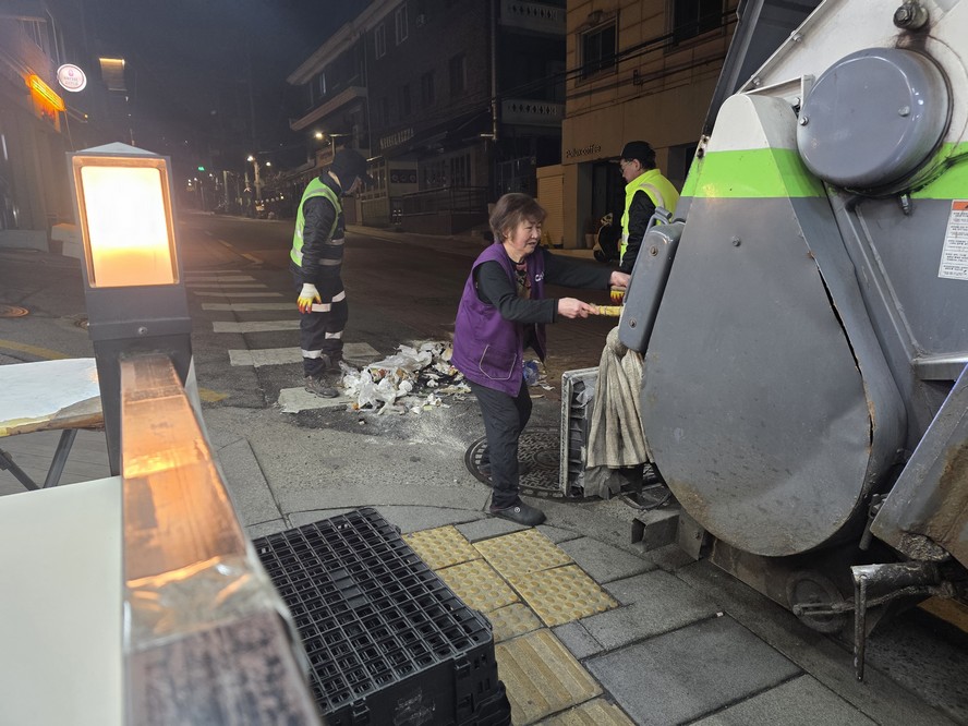 Not sure what happened, but suddenly there was garbage on the street and the CU owner was helping them clean up.