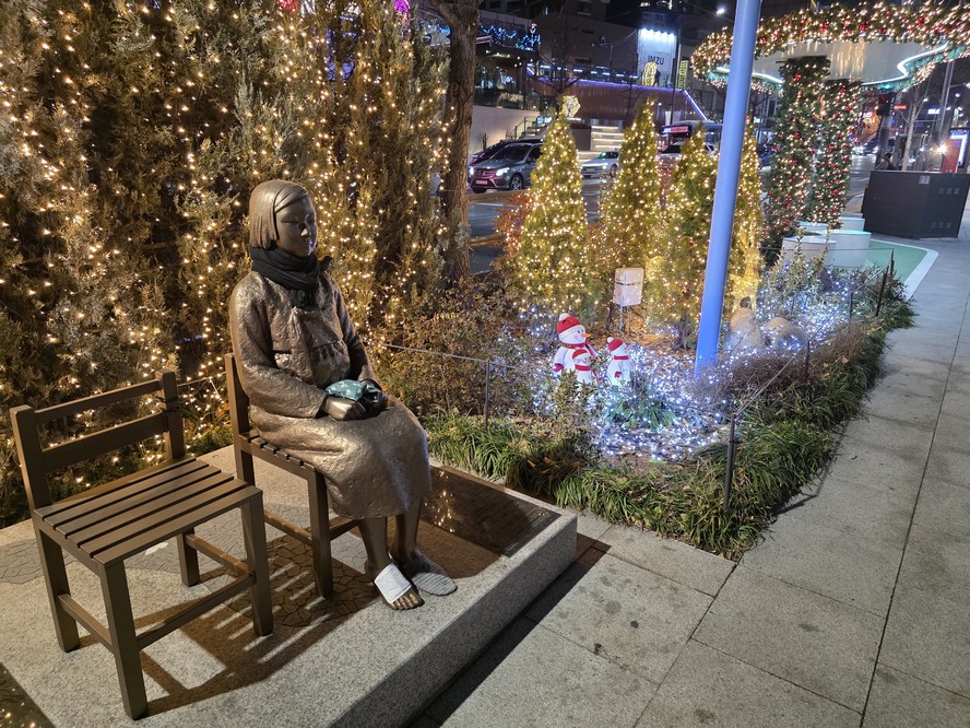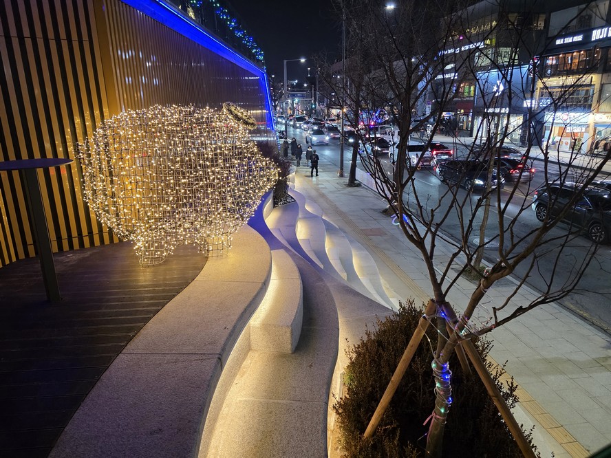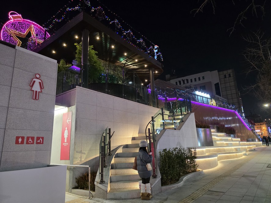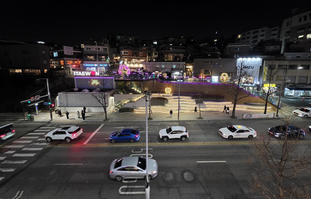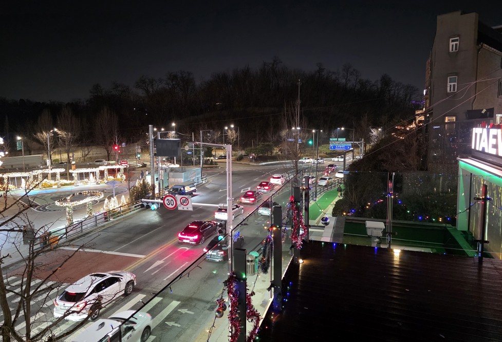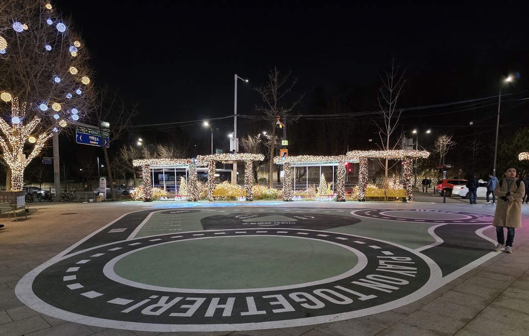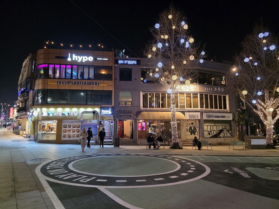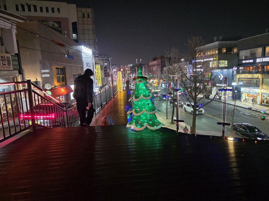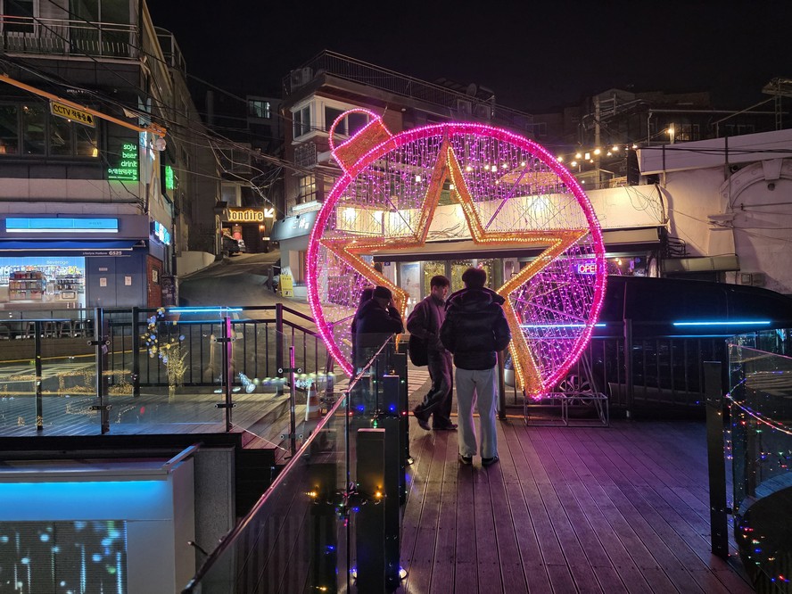 Looking toward Itaewon Station. I assume the seasonal decorations won't stay long.