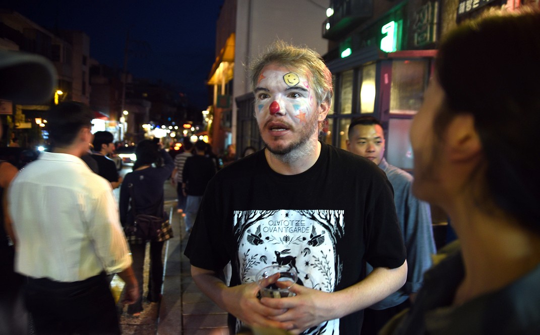 Thanks to a facepaint artist, we had Jamie in clownface. He told me it was a gift for Emery.